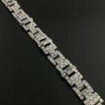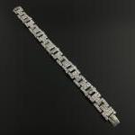 BRACELET en platine 950 millièmes à maille géométrique articulée orné de 288 petits DIAMANTS. Les motifs rectangulaires ajourés sont pavés de diamants taille moderne et centrés de deux diamants baguette épaulés de quatre autres diamants baguette.
