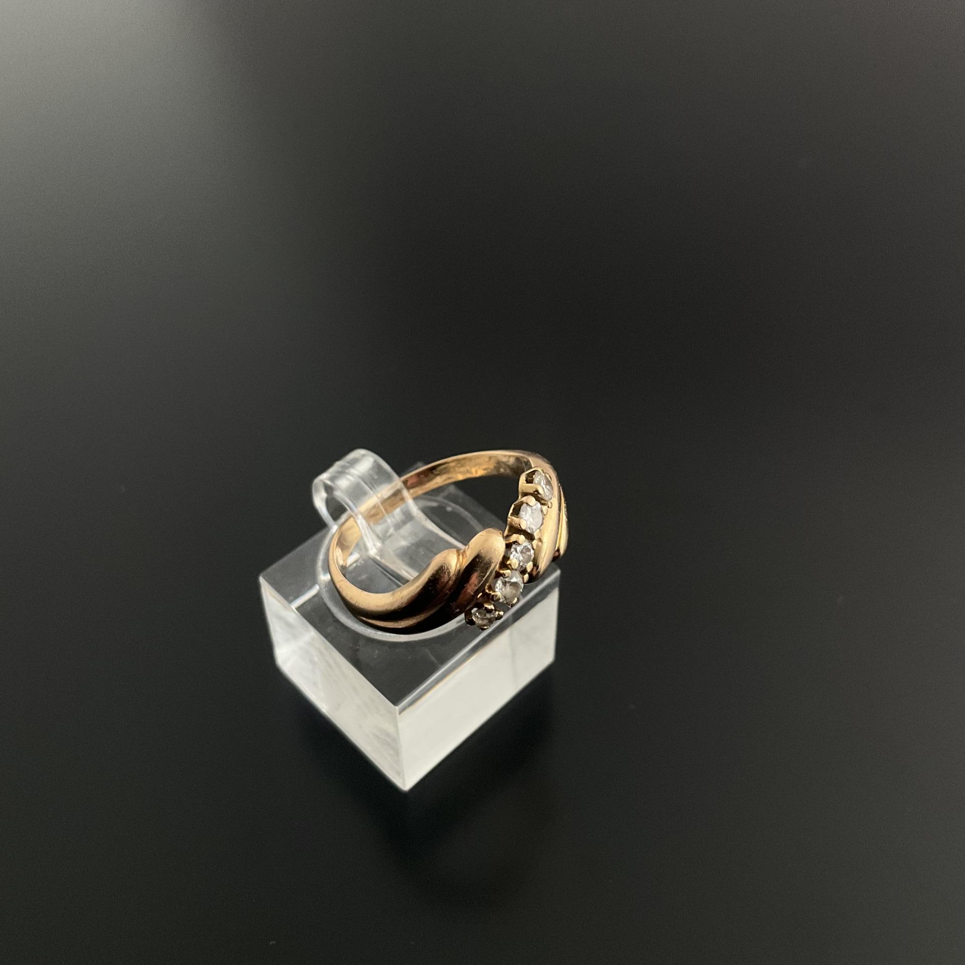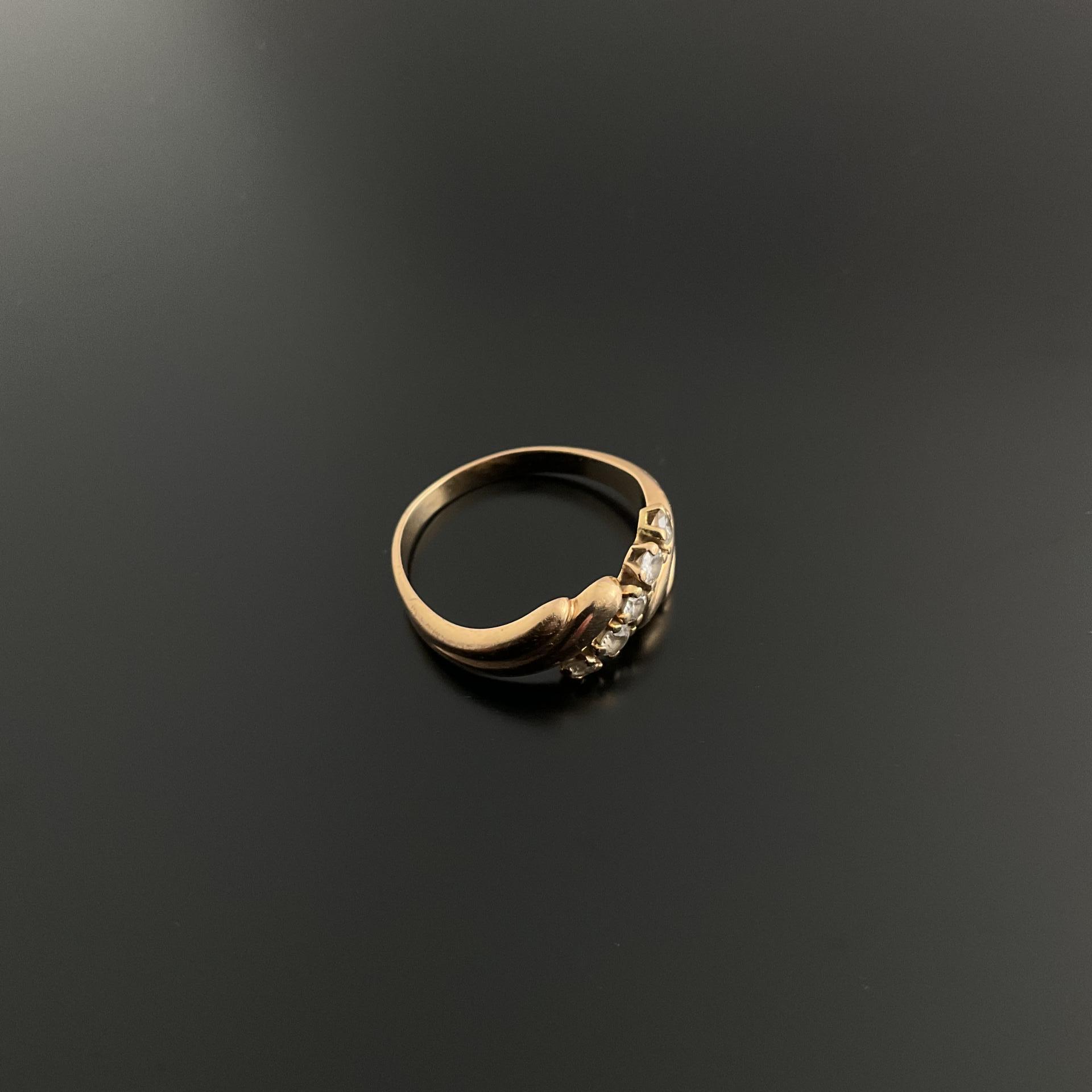 BAGUE en or jaune 750 millièmes ornée d'une ligne de cinq petits BRILLANTS flanquée de godrons. Le plus gros d'environ 0,04 carat.