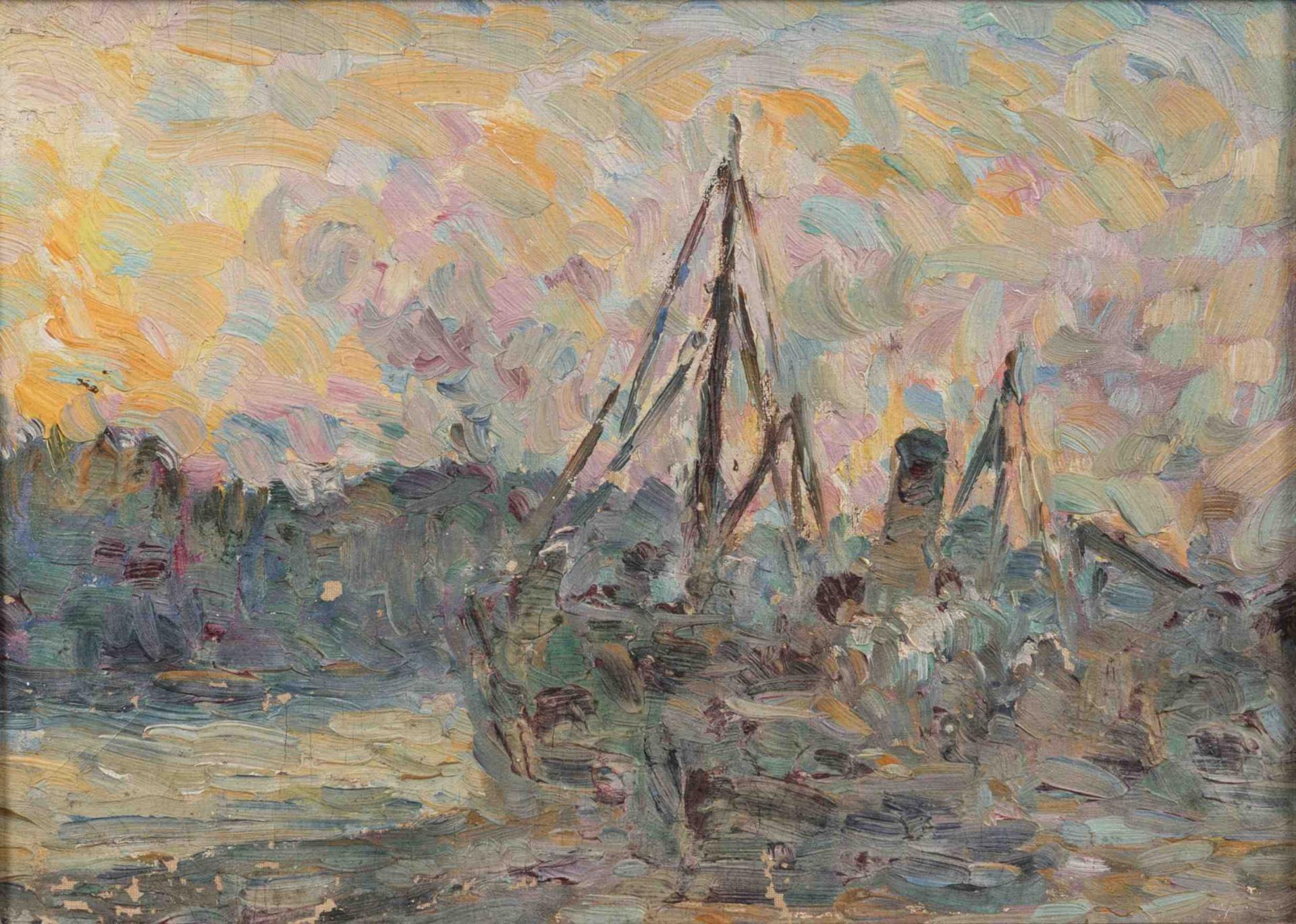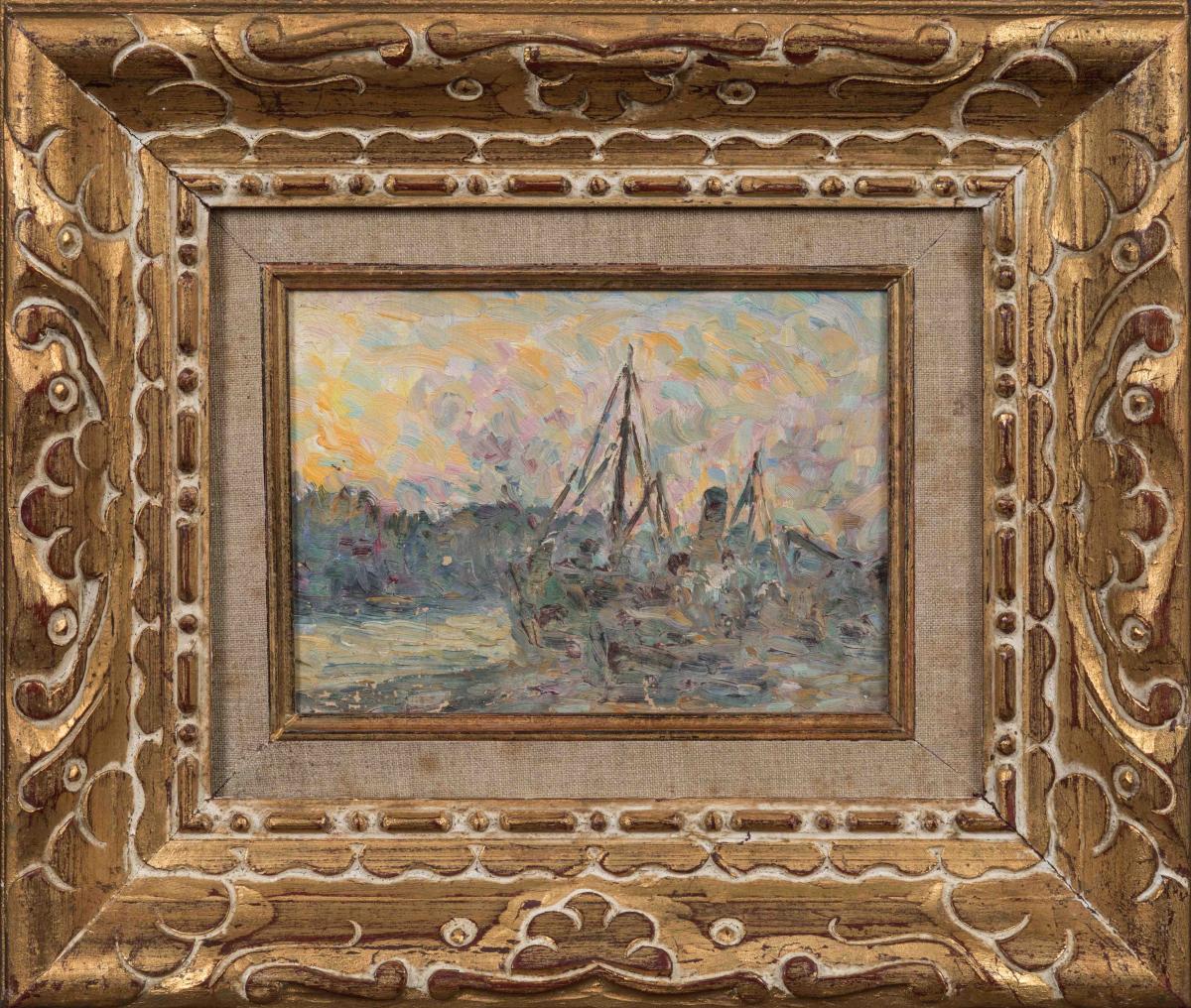 Anatole Eugène HILLAIRET (1880-1928)"Port du Louvre".Huile sur toile marouflée sur carton signée et titrée au...