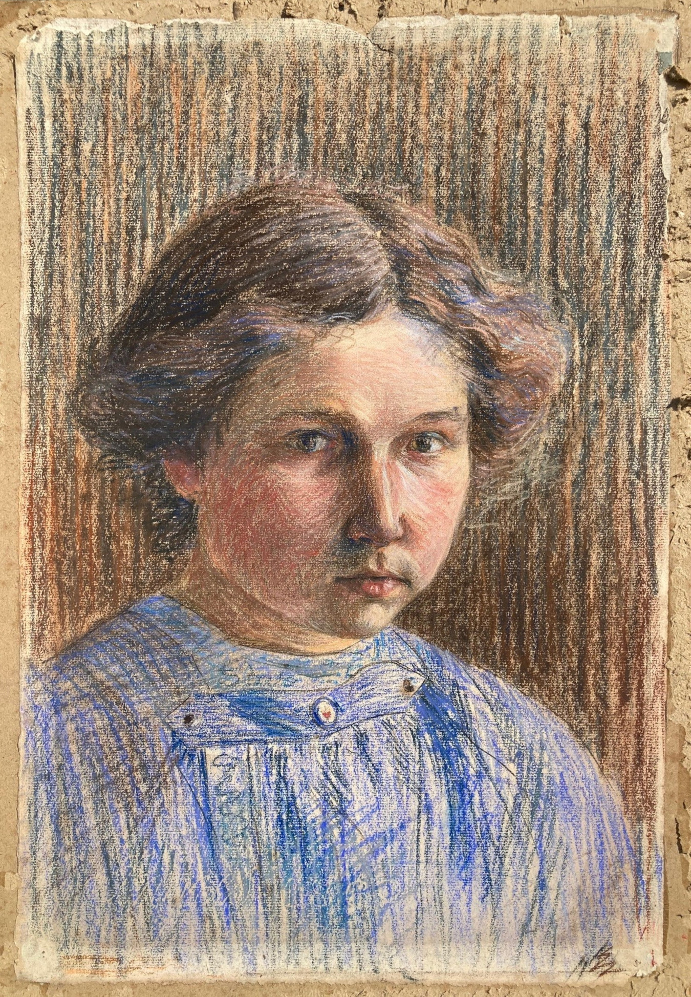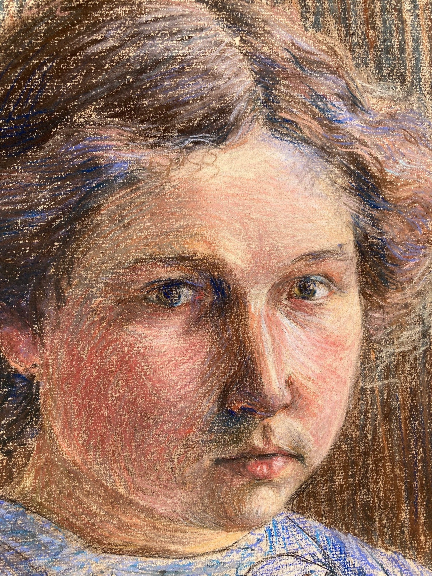 Ecole MODERNE vers 1900.Portrait de jeune fille au Sacré Coeur.Pastel sur papier...
