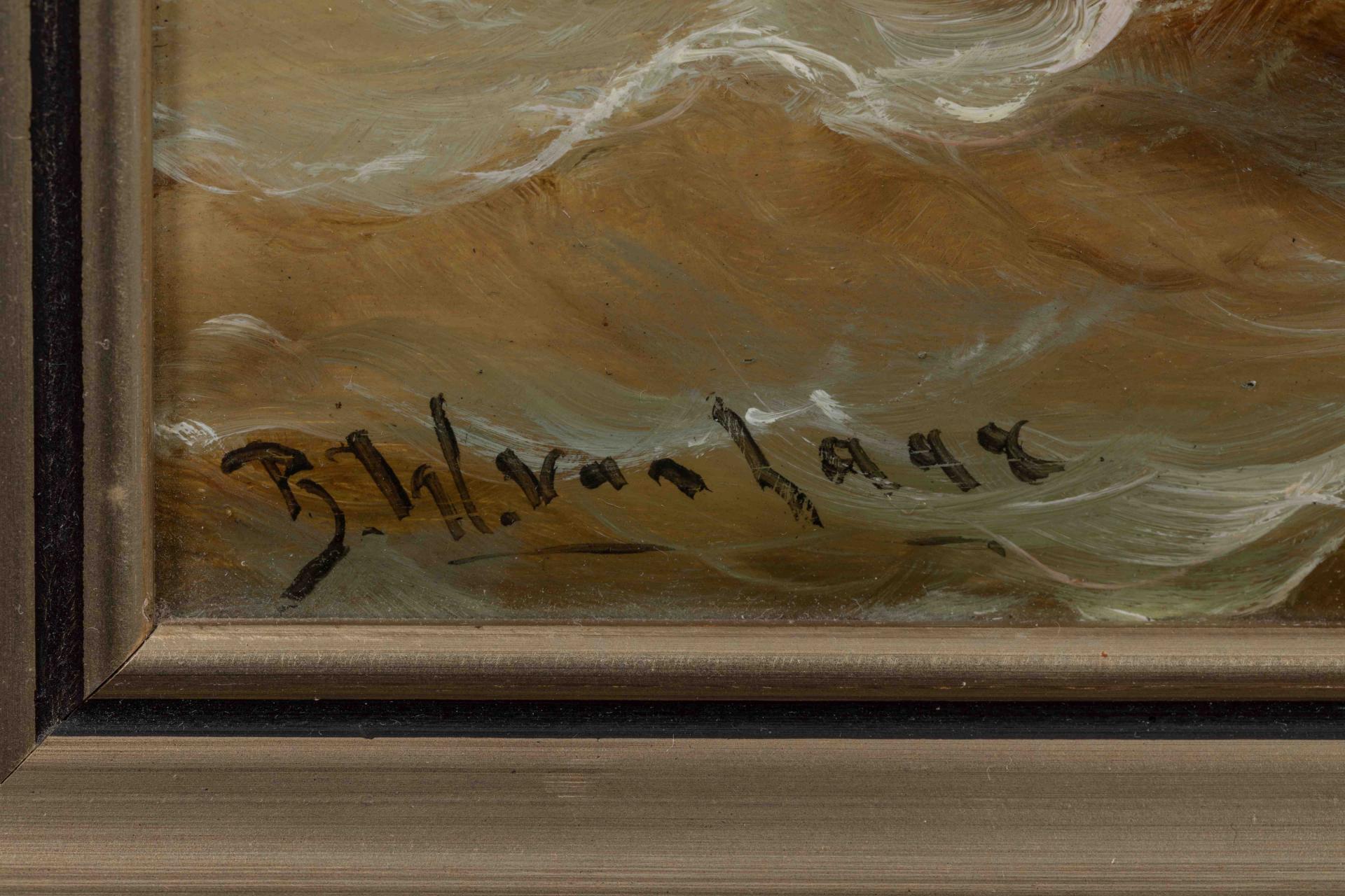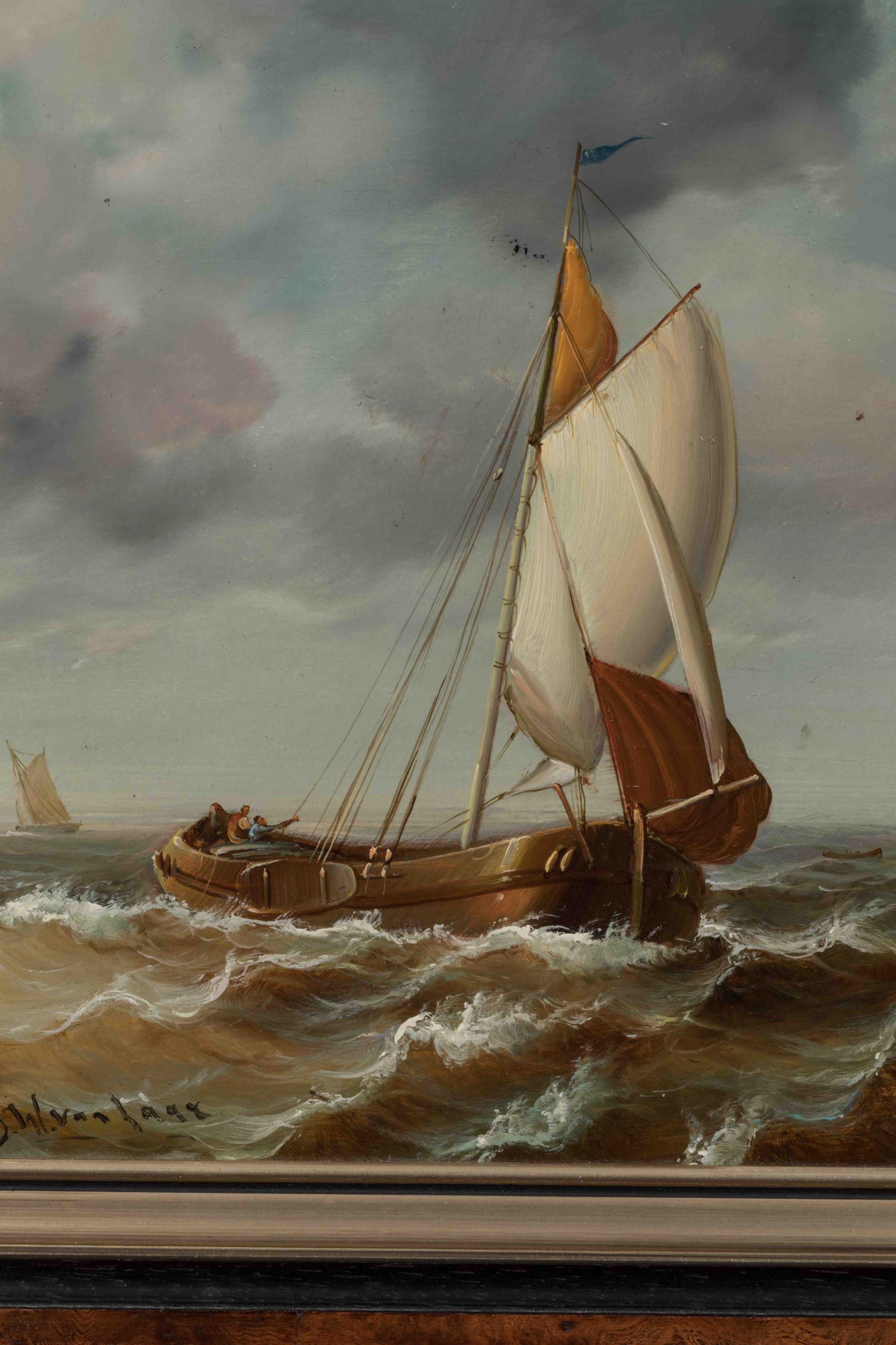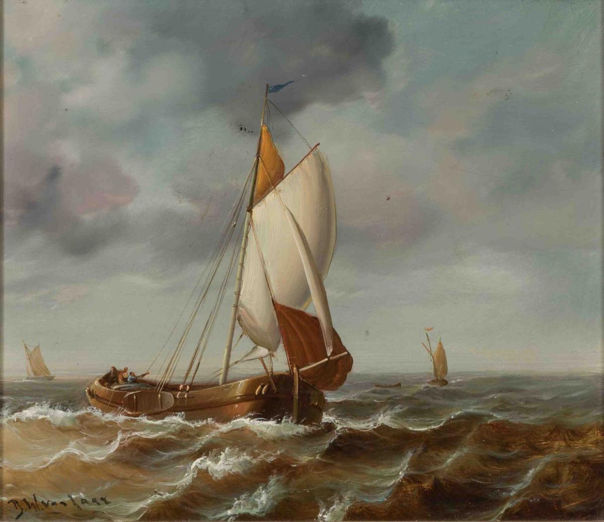 Bartol Wilhelm VAN LAAR (1818-1901)Voilier par mer agitée. Huile sur panneau signée en bas à gauche. Hauteur : 28,5 cm. Largeur : 32,5 cm.