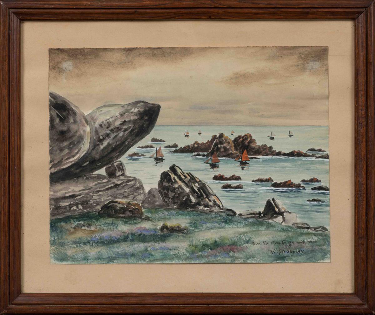 Raymond BLOSSIER (XXe) "Sur la Côte de granit rose". Aquarelle signée et titrée en bas à droite. Hauteur : 25 cm. Largeur : 32 cm.