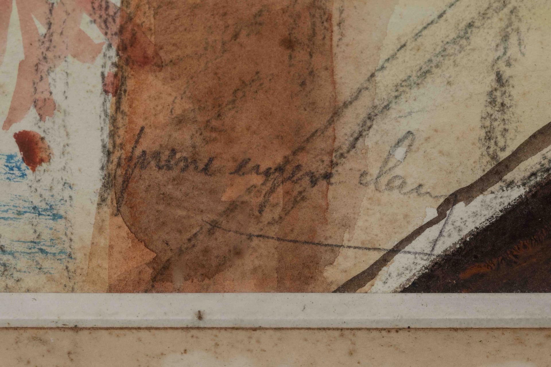 Aquarelle et fusain signée en...