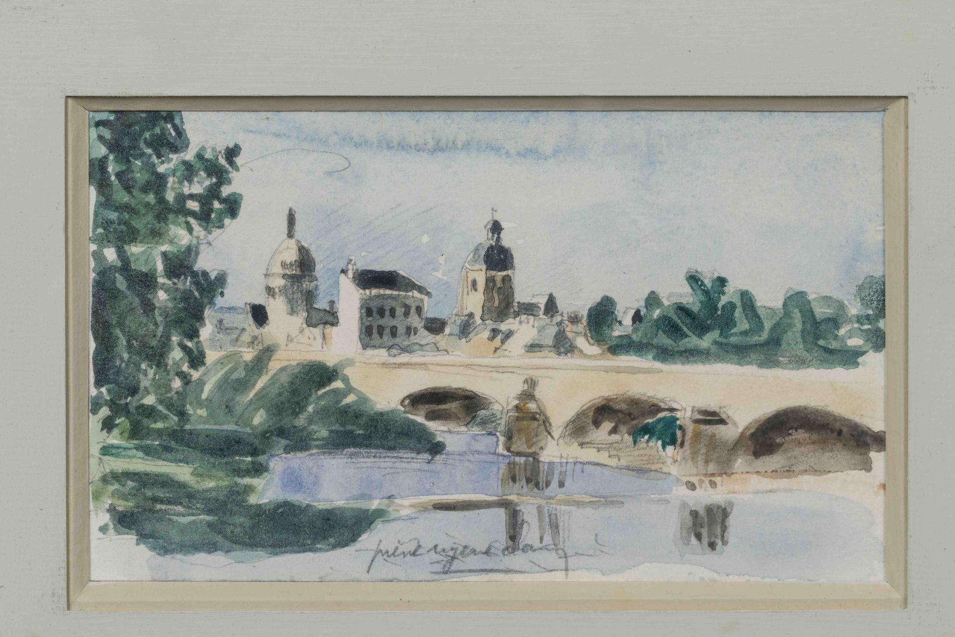 Aquarelle et fusain signée en...