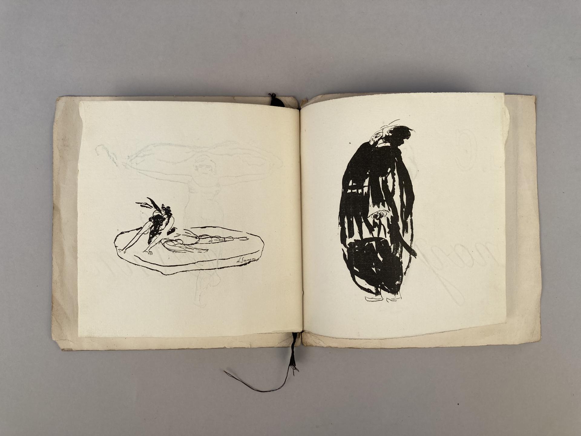 Bel envoi sur le titre "Pour Monsieur Simon, ces dessins faits aux Ballets Russes de Diaghilev à l'Opéra en 1910. Cette plaquette est mon premier livre illustré, imprimé par Bernouard. En toute sympathie. Dunoyer de Segonzac".