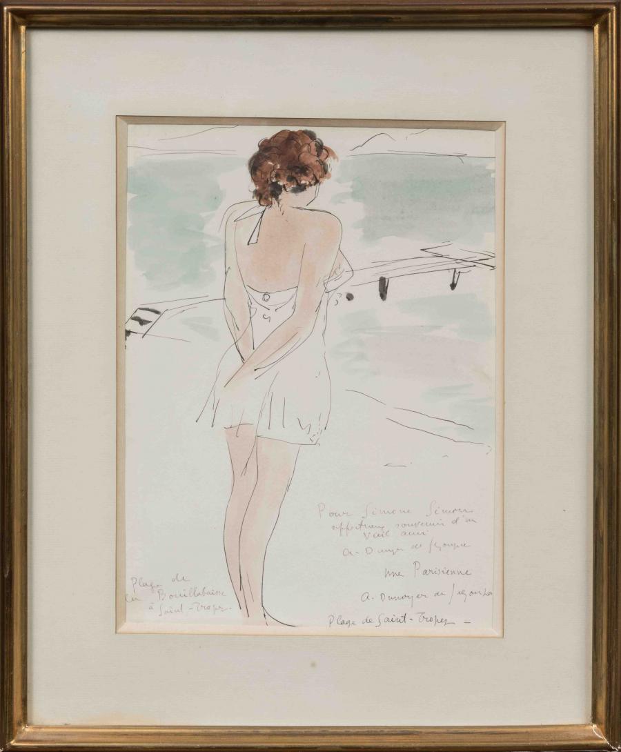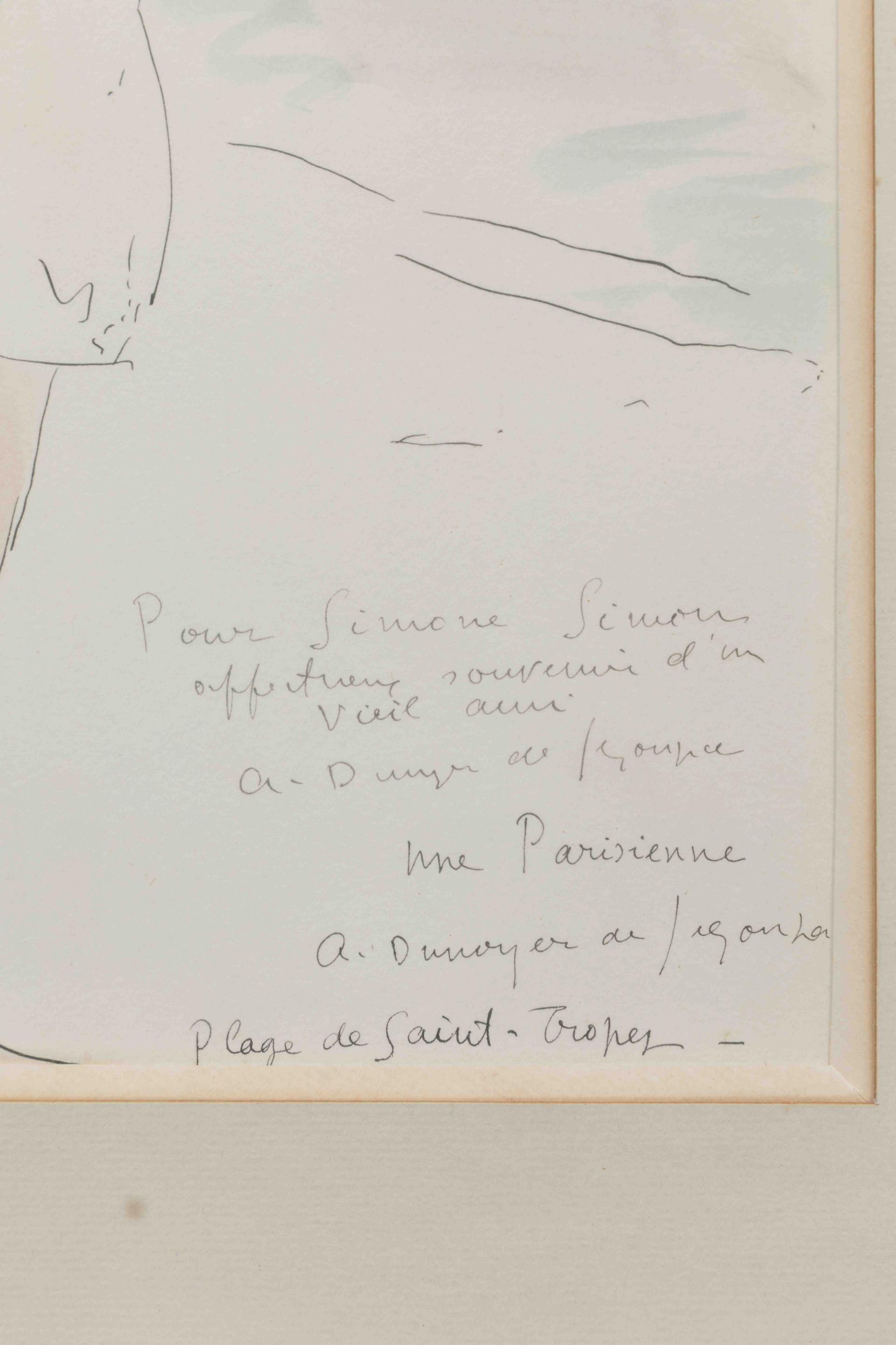 Planche en couleurs extraite de l'ouvrage "Côtes Roties". Titrée, signée, et dédicacée "Pour Simone Simon affectueux souvenir d'un vieil ami".