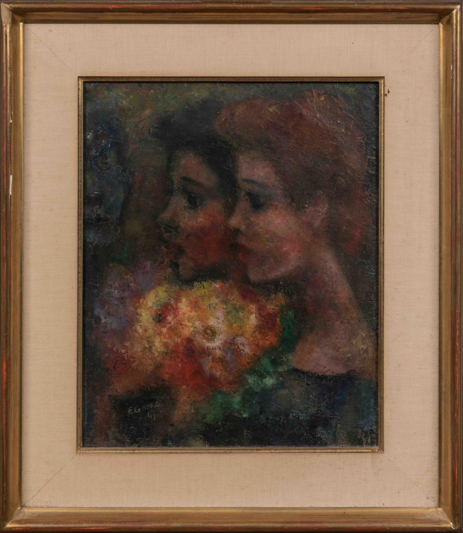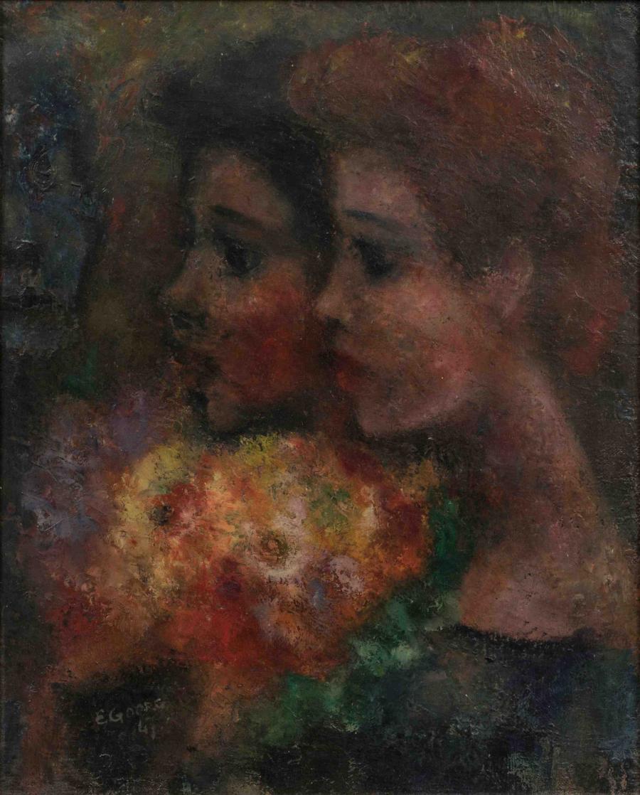 Edouard GOERG (Sydney, 1893 - Callian, 1969)"Deux jeunes femmes et une vieille".Huile sur toile signée...