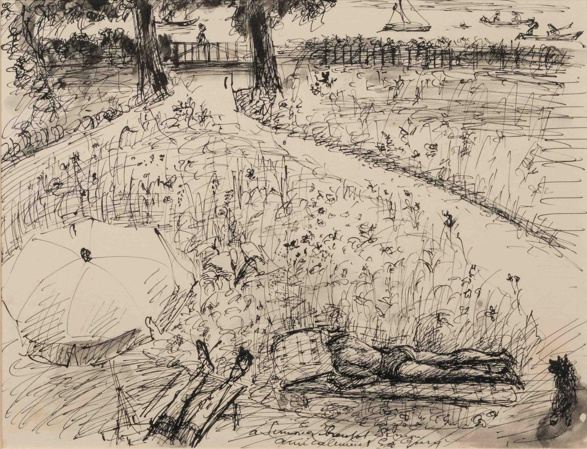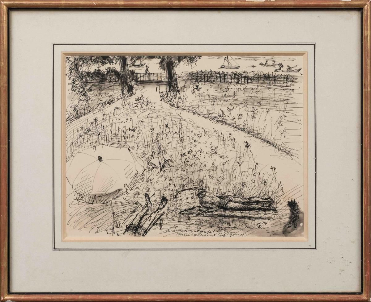 Edouard GOERG (Sydney, 1893 - Callian, 1969)Bain de soleil en bord de mer.Encre signée et...