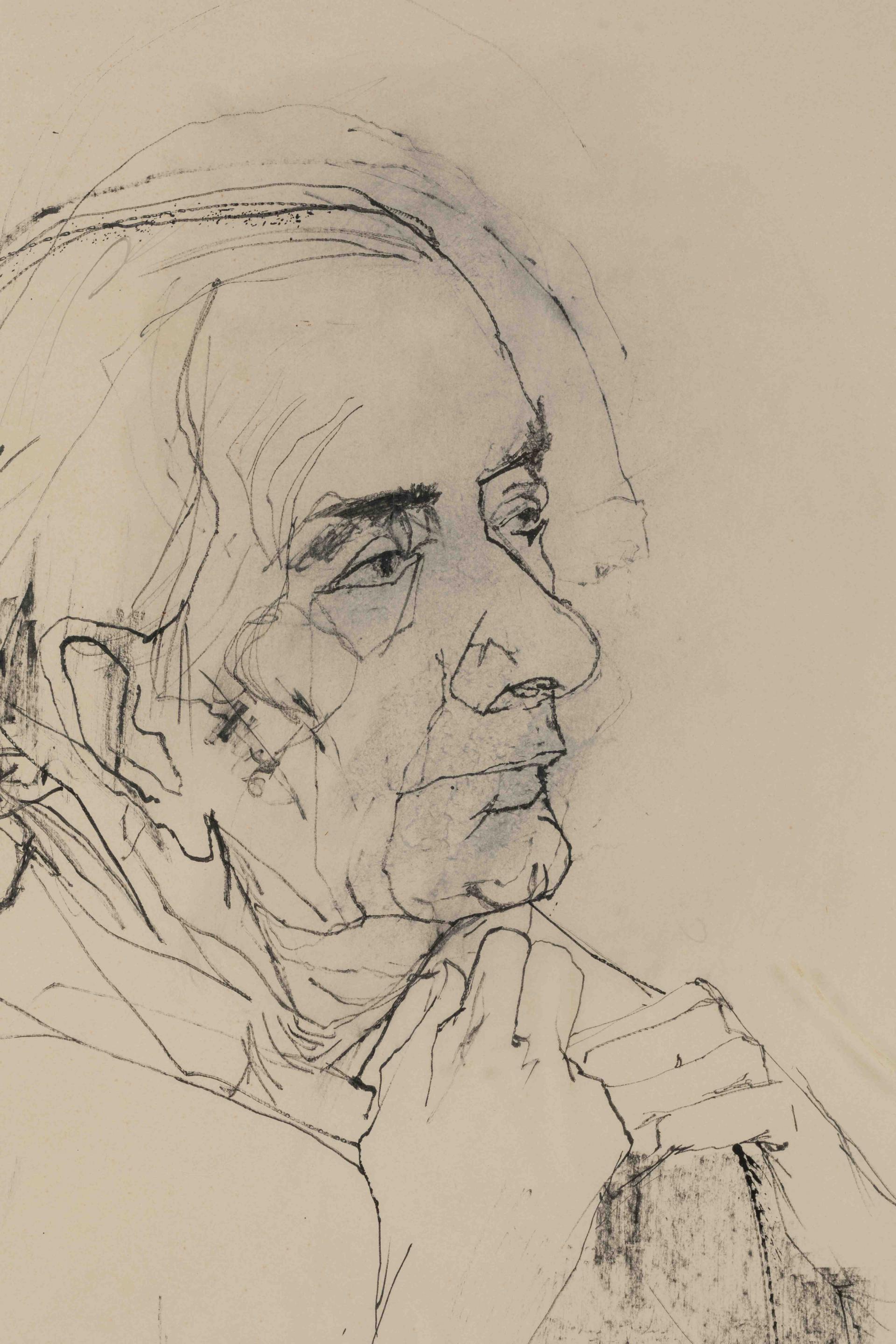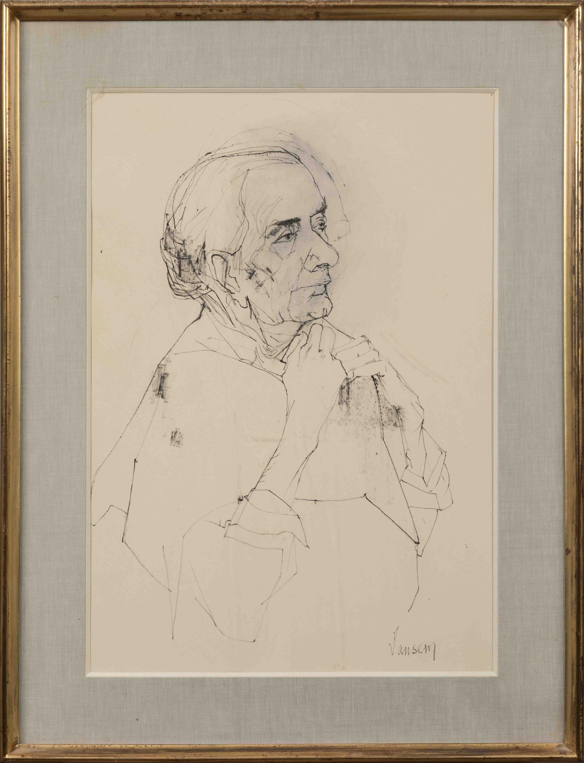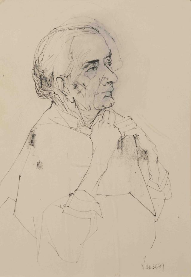 Jean JANSEM (Seuleuze, 1920 - Saint-Aignan-sur-Cher, 2013)Vieille dame nouant son foulard.Encre sur papier signée en...