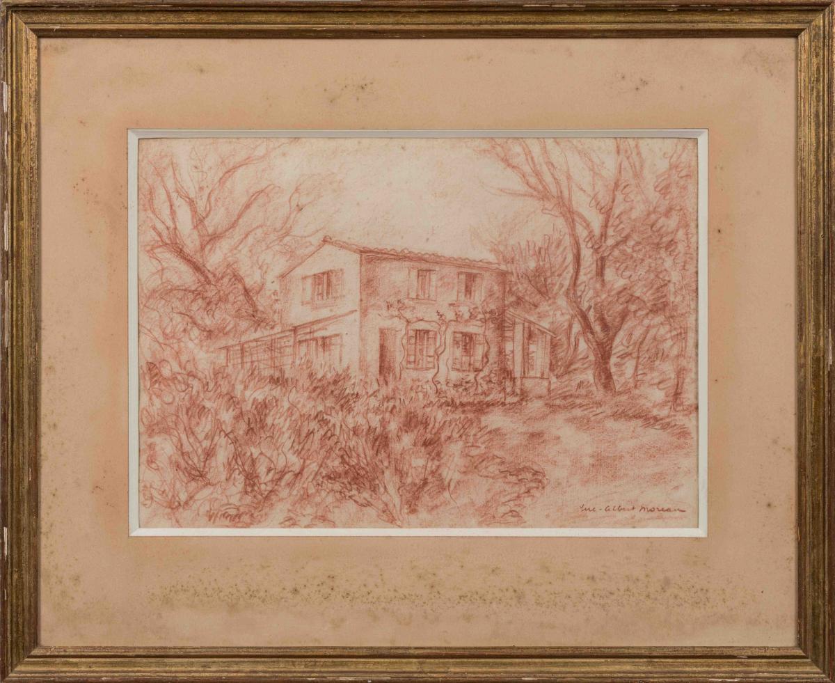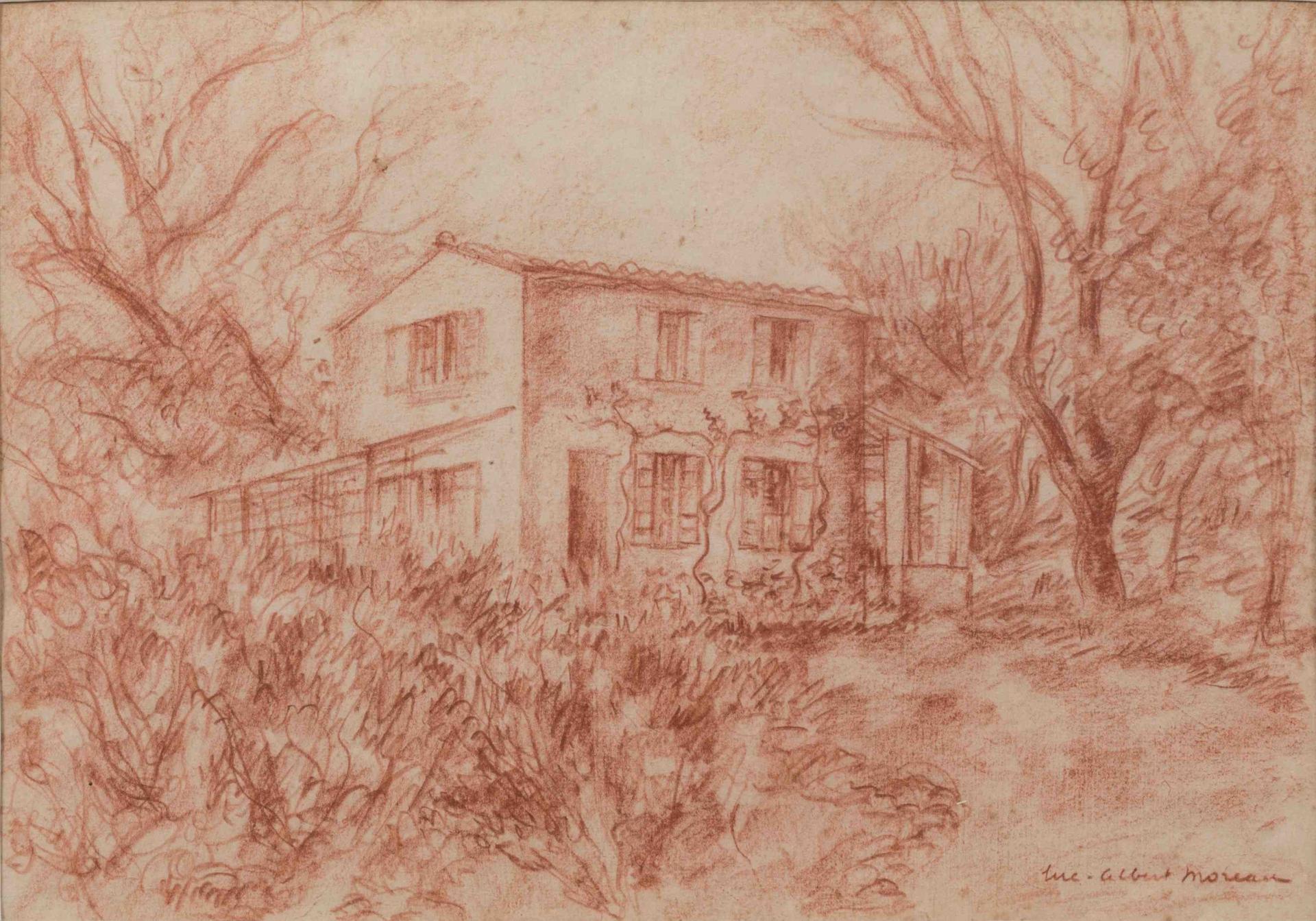 Luc-Albert MOREAU (Paris, 1882-1948)Maison de campagne.Sanguine signée en bas à droite. Hauteur : 26 cm....