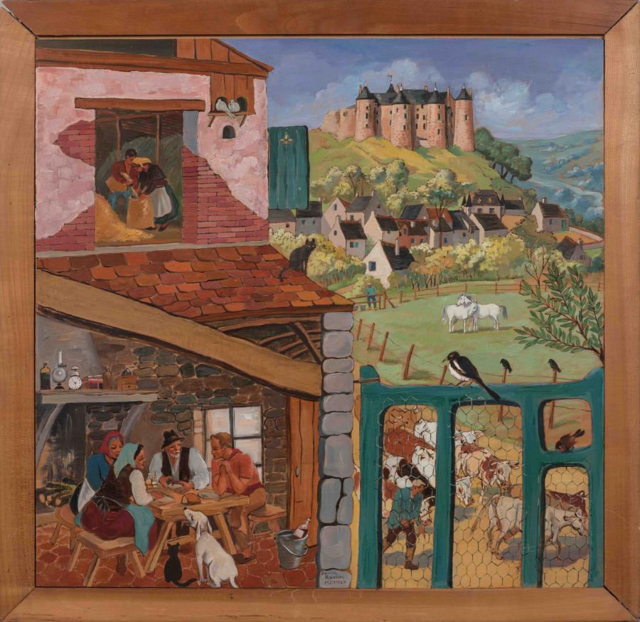Huile sur panneau signée et datée MDCCCCLV en bas au milieu.