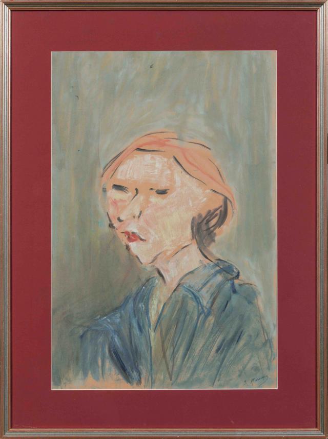 Eliane HUREAUX (Charleville-Mézières, 1905 - Quintin,1994)Autoportrait.Gouache signée en bas à droite. Hauteur : 47,5 cm....