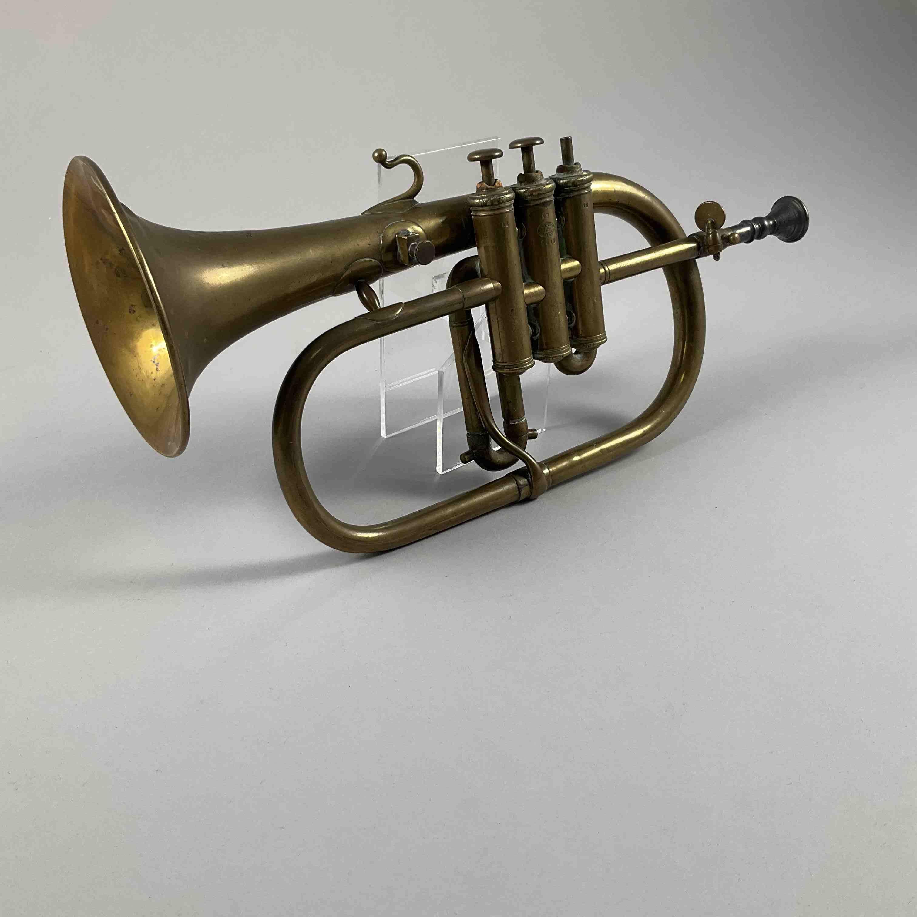 BUGLE à pistons en laiton de la maison Besson à Paris. Numéroté 3013.