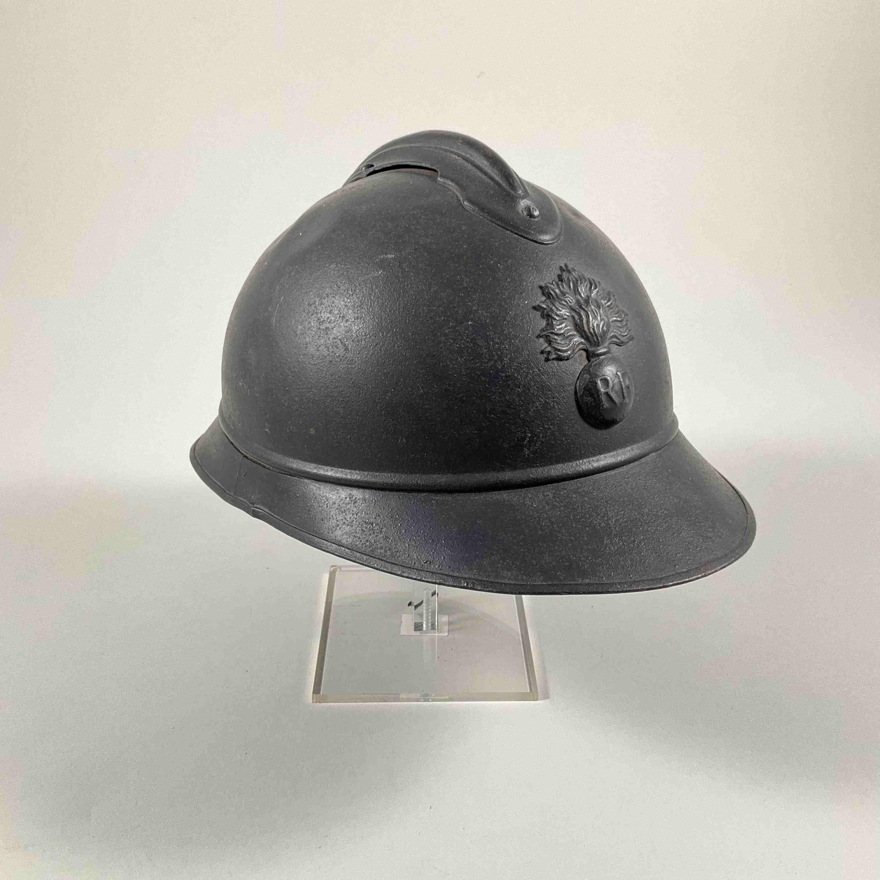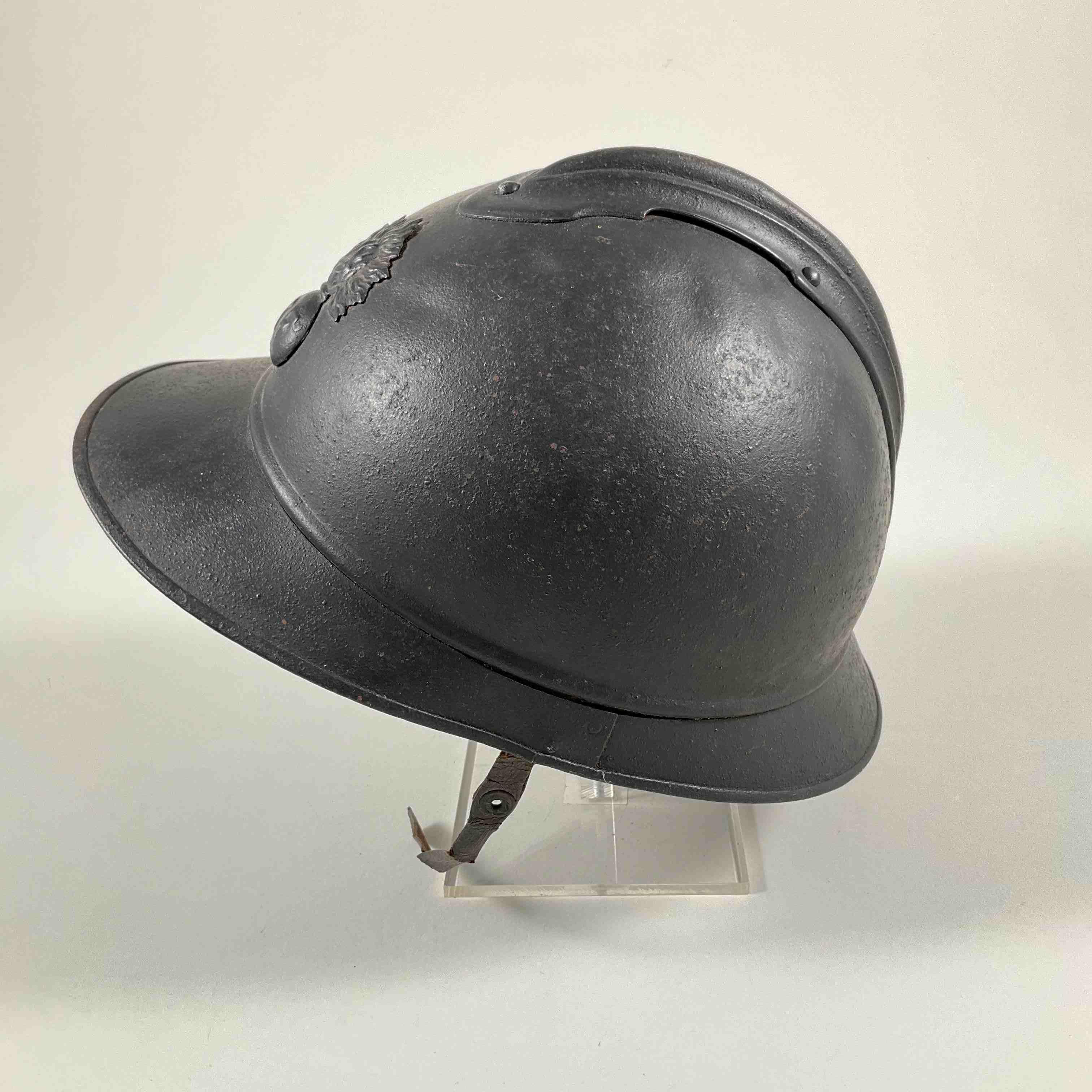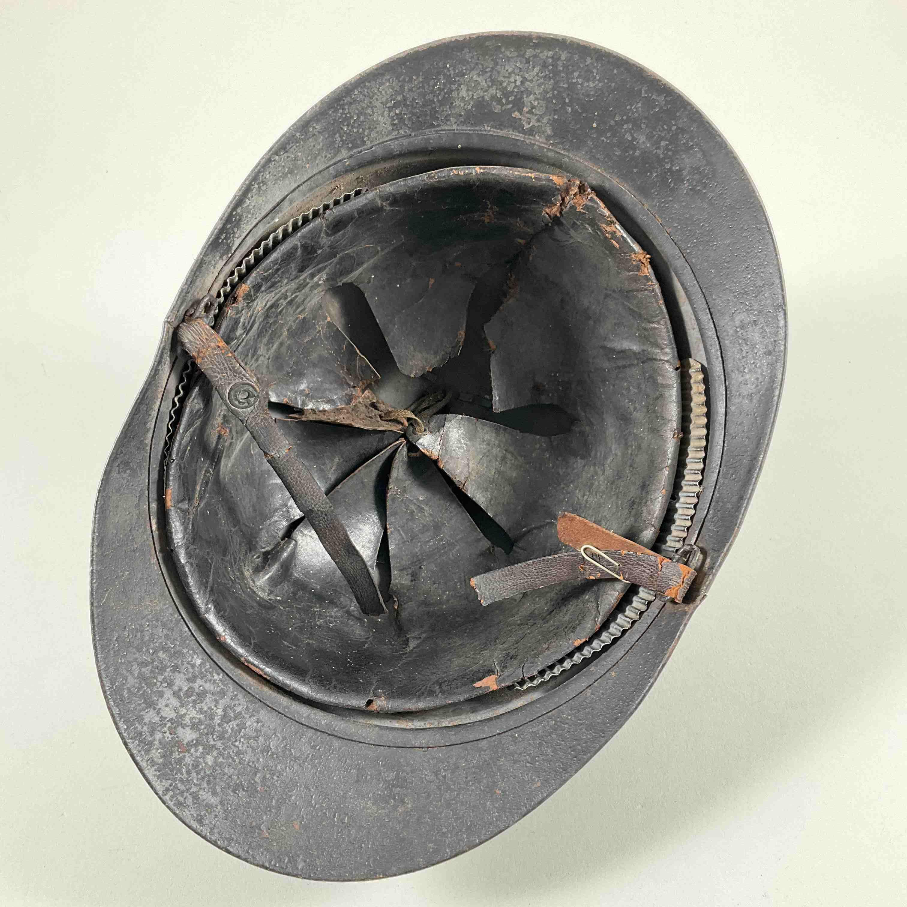 FRANCE, 1ère G.M.. CASQUE ADRIAN 1914 avec sa coiffe. Jugulaire cassée (En l'état)