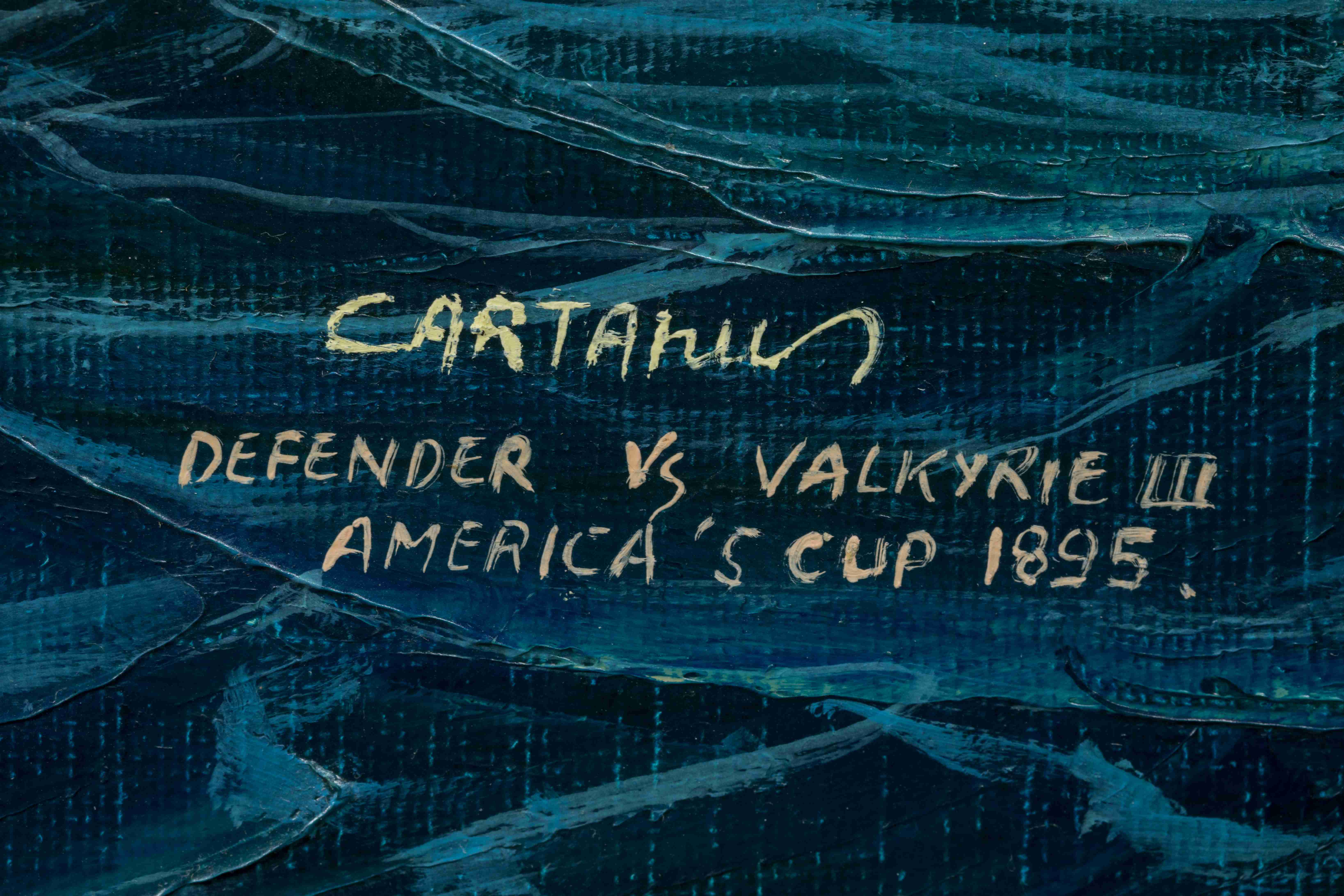 Hubert CARTAHU (1960)"Defender vs Valkyrie III / America's Cup 1895". Huile sur toile signée en...