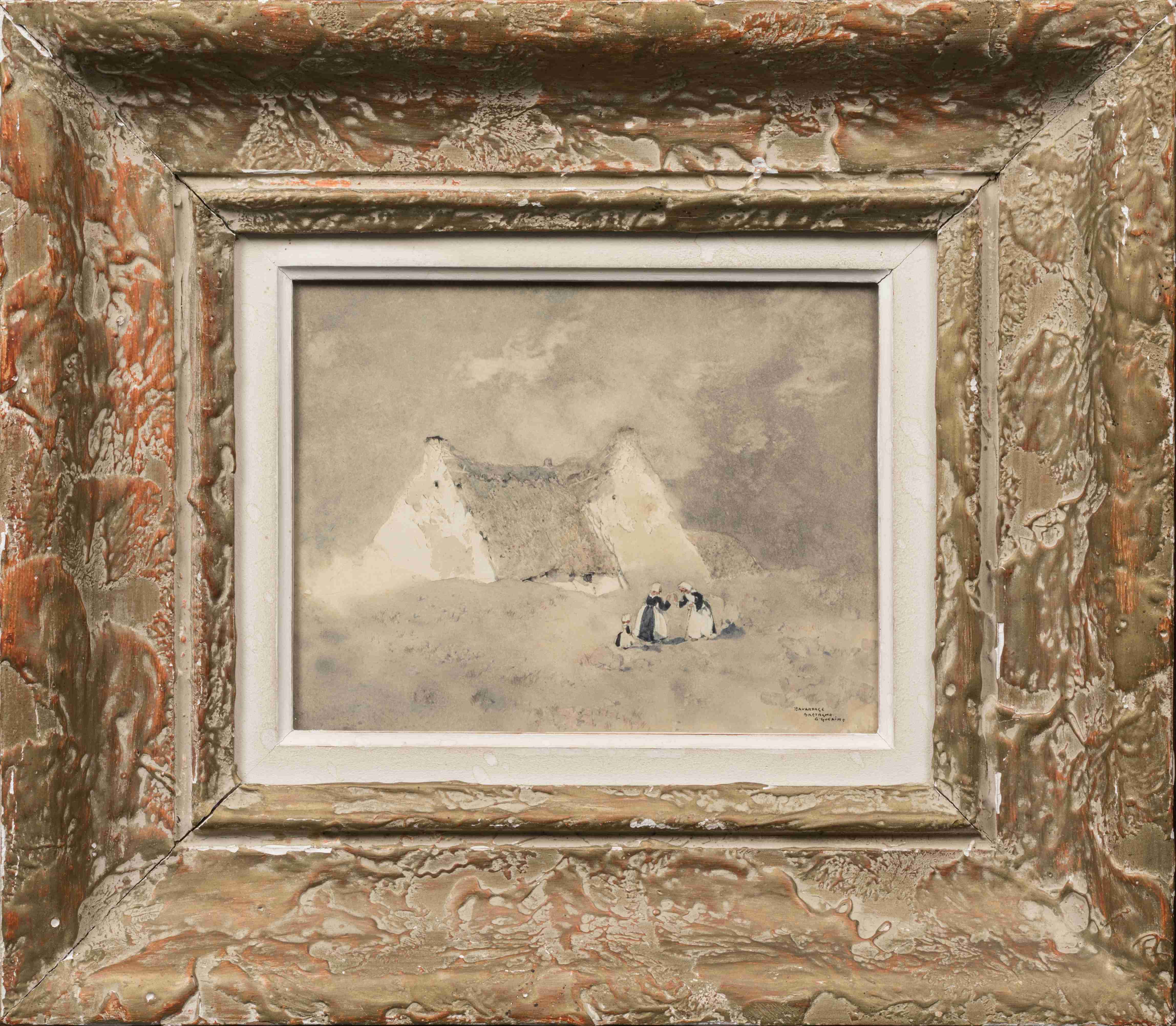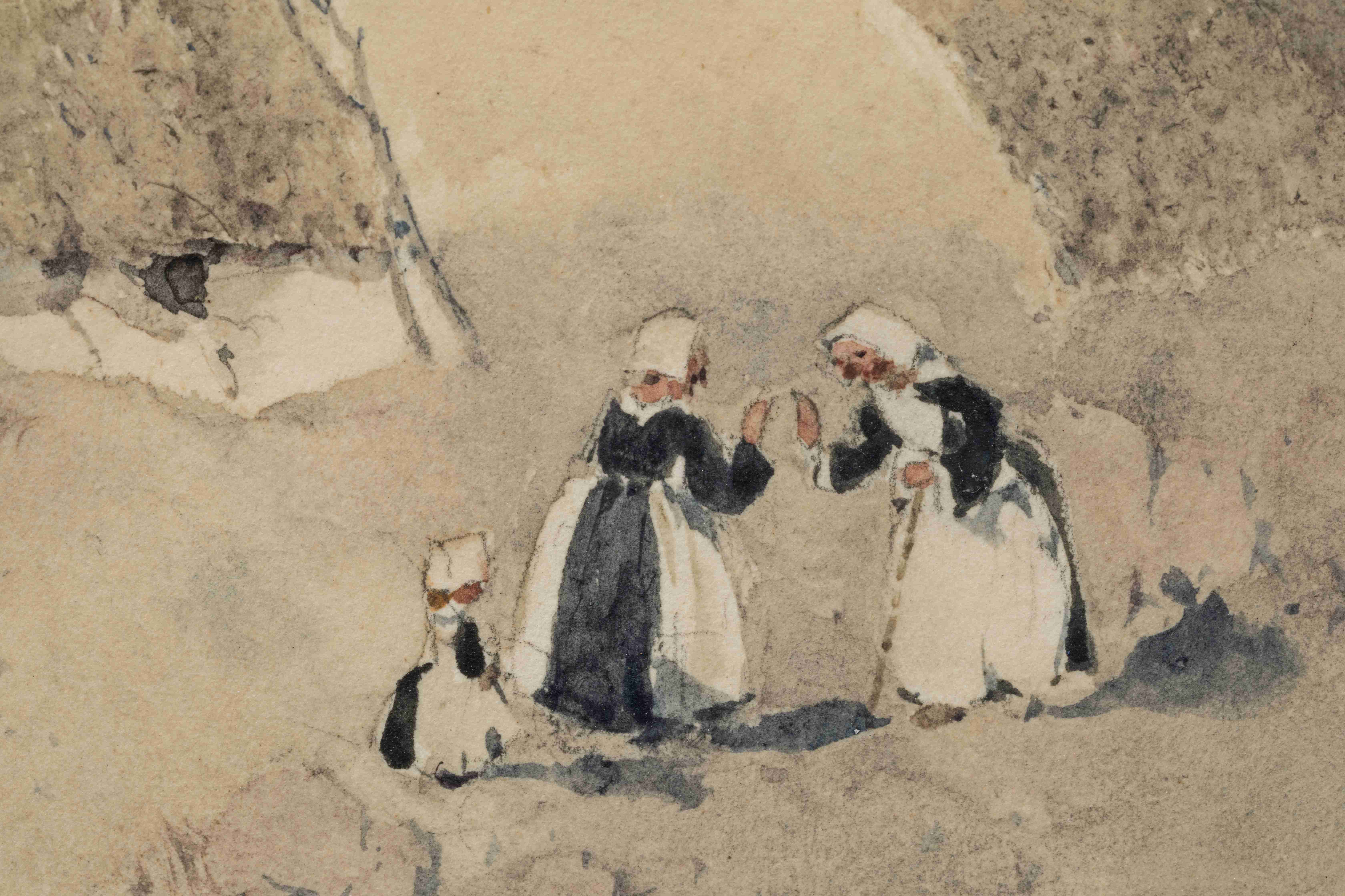 Ernest GUERIN (Rennes, 1887 - Quiberon, 1952) "Bavardage - Bretagne" Aquarelle signée à l'hermine et titrée en...
