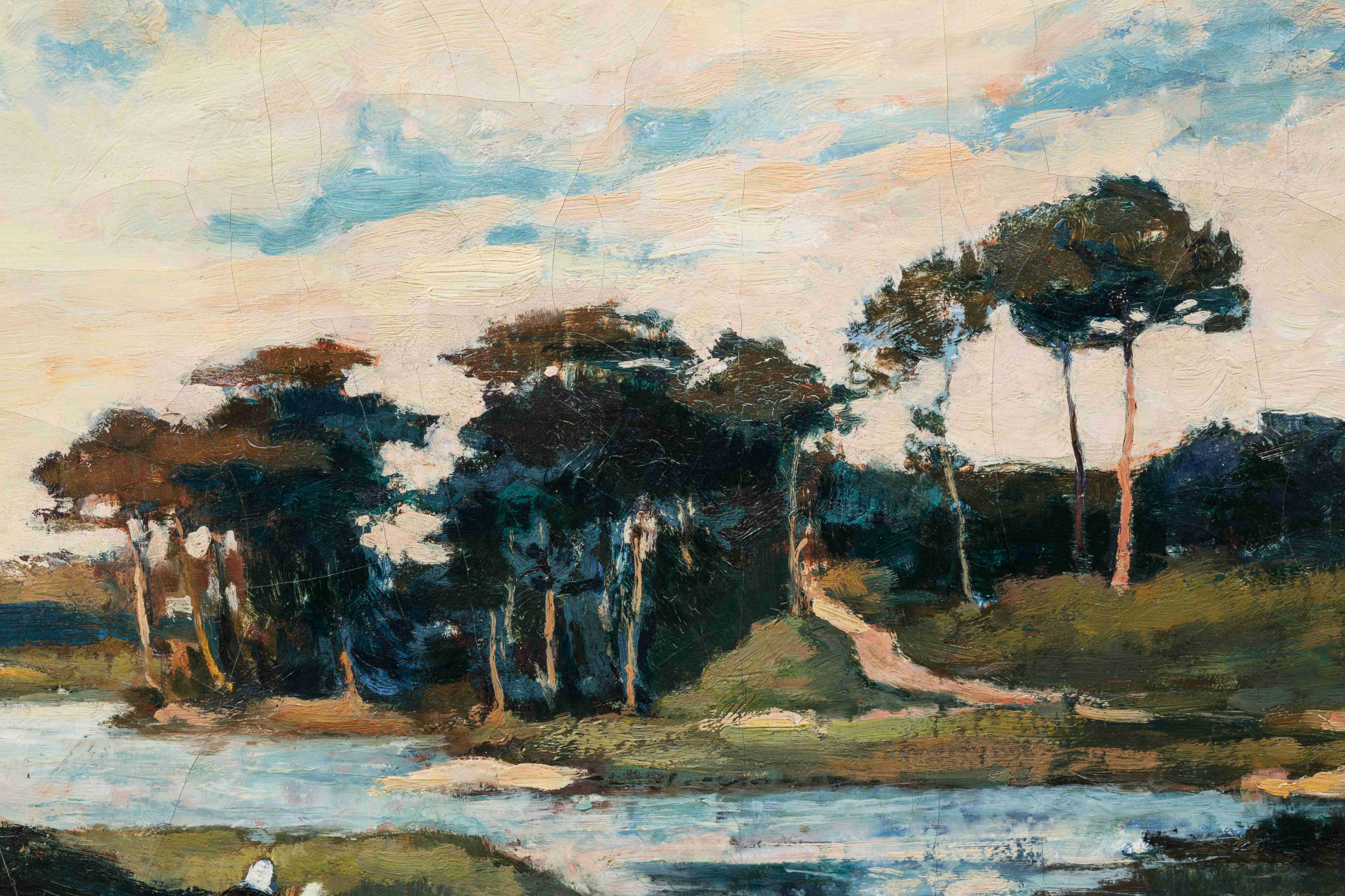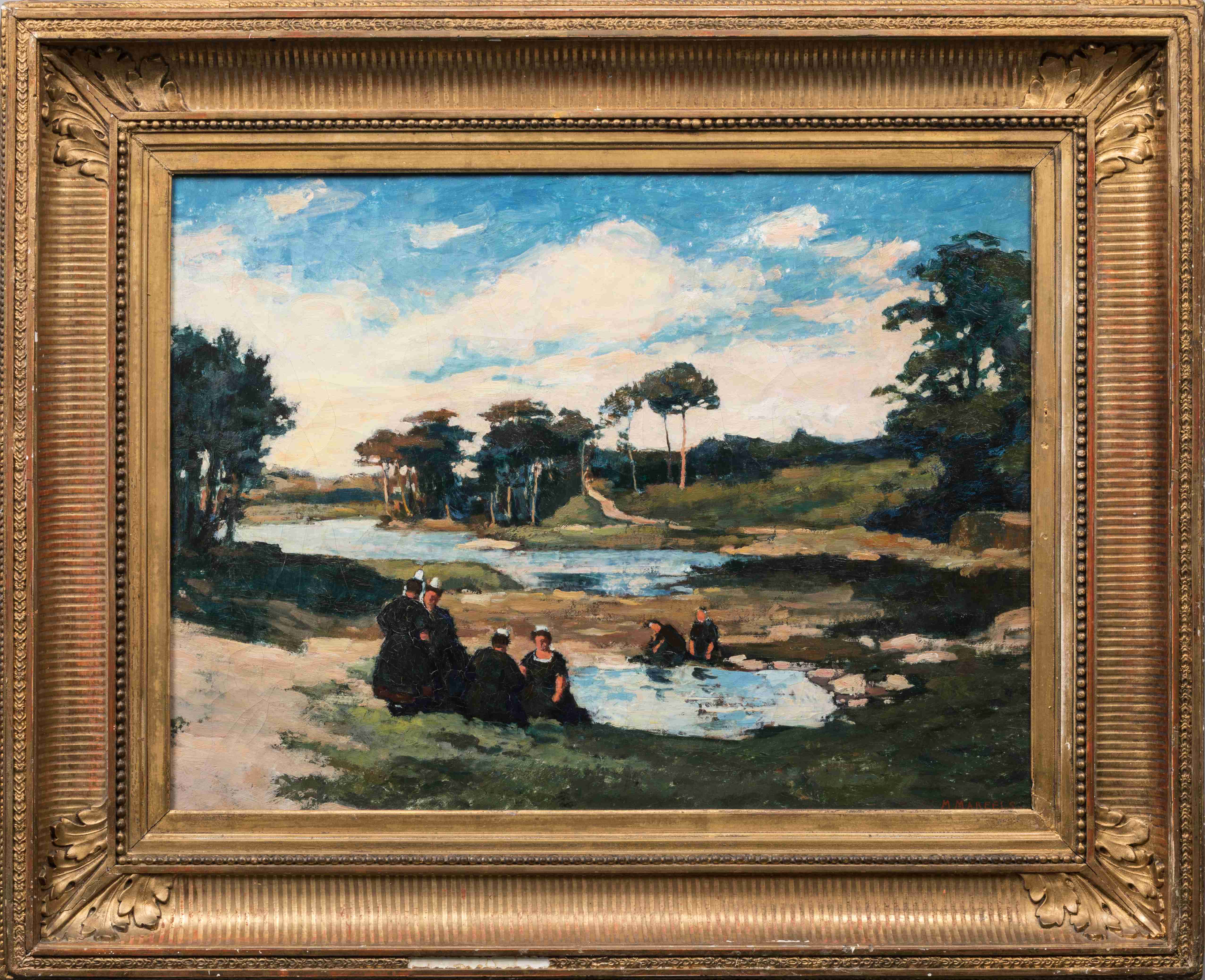 Huile sur toile signée et datée 25 en bas à droite. Située "Environs de Pont-L'Abbé, Finistère", signée et datée au dos.