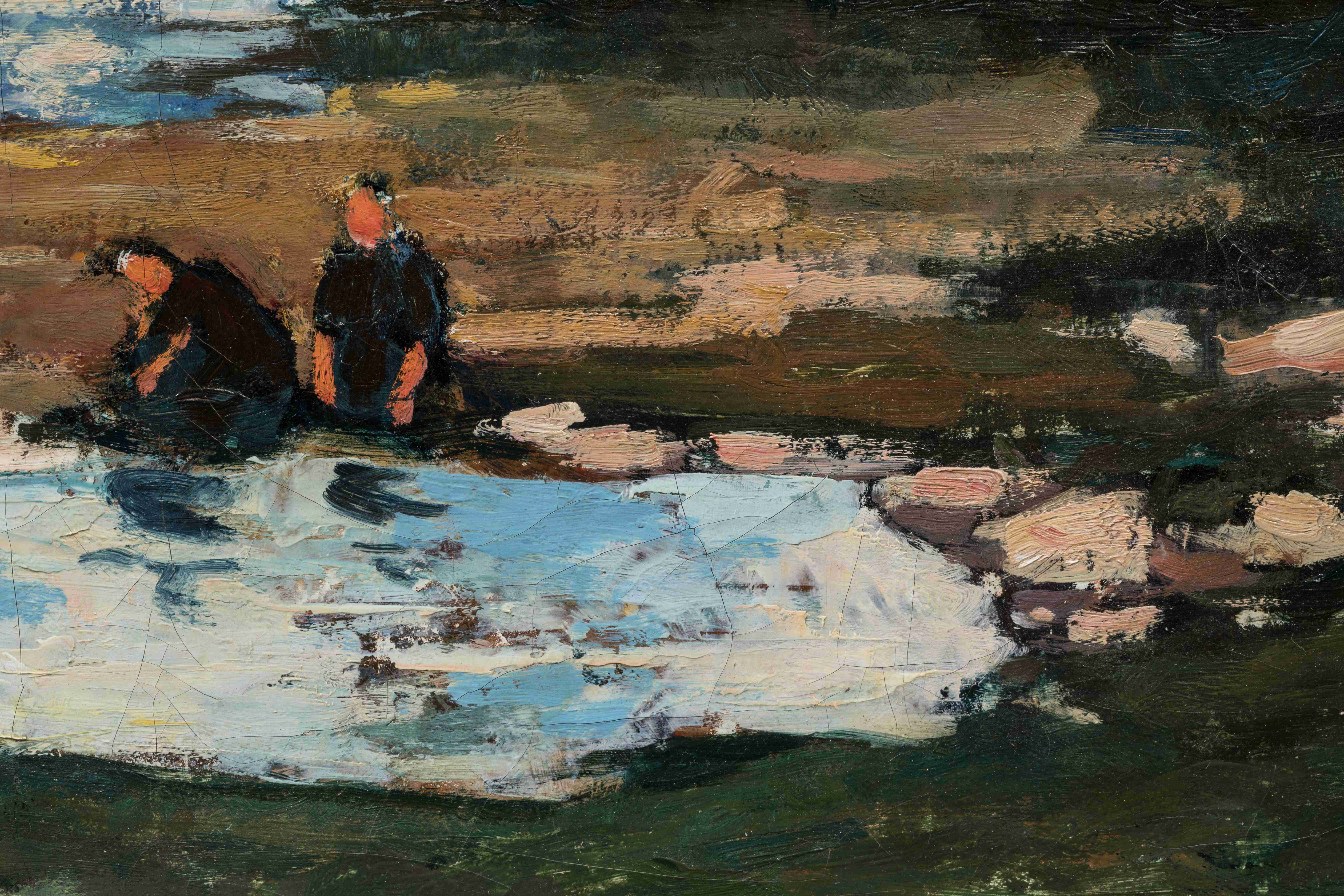 Maurice MAREELS (Saint-Gilles, 1893 - Uccle, 1976) Lavandières en bord de mer. Huile sur toile signée et...
