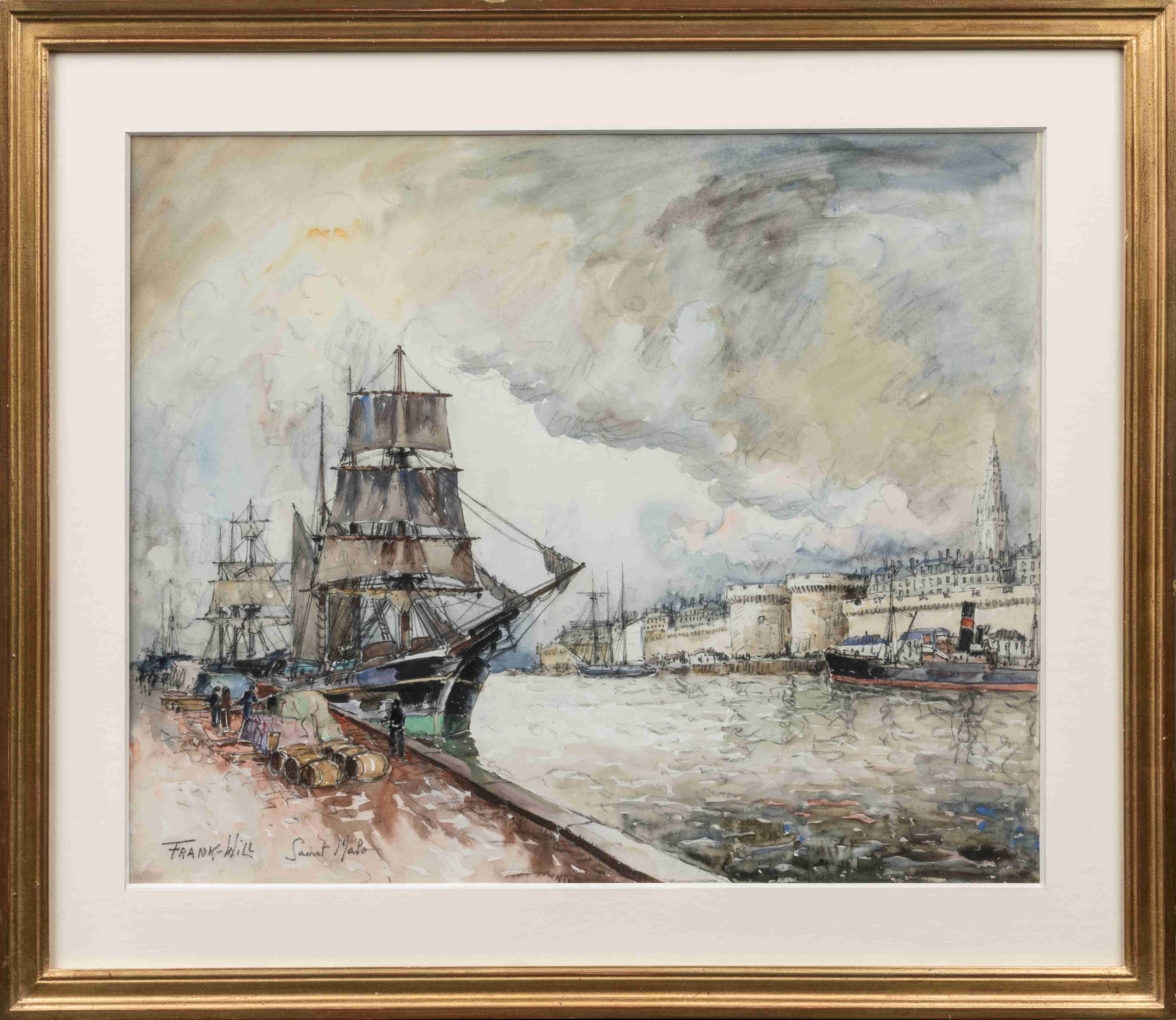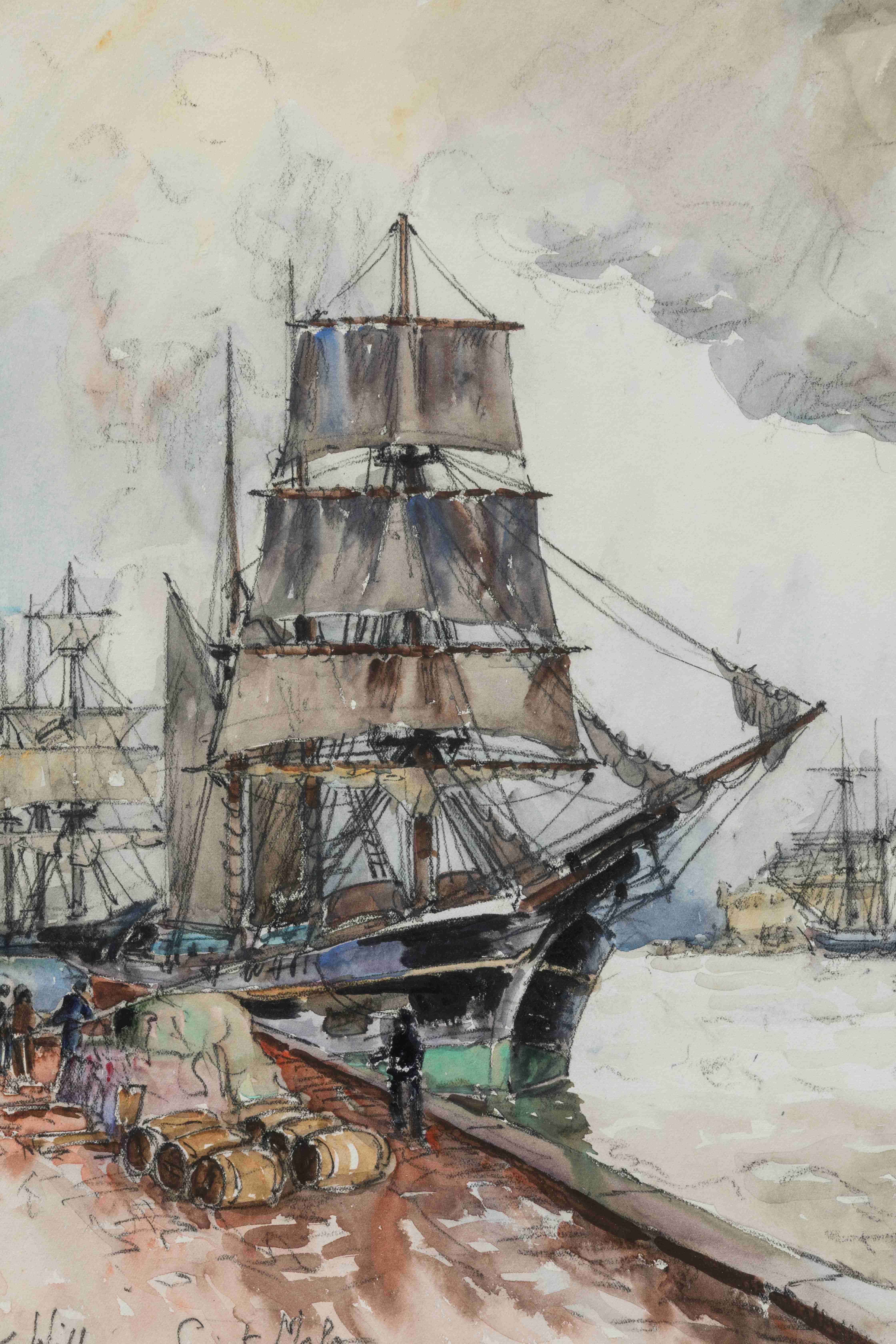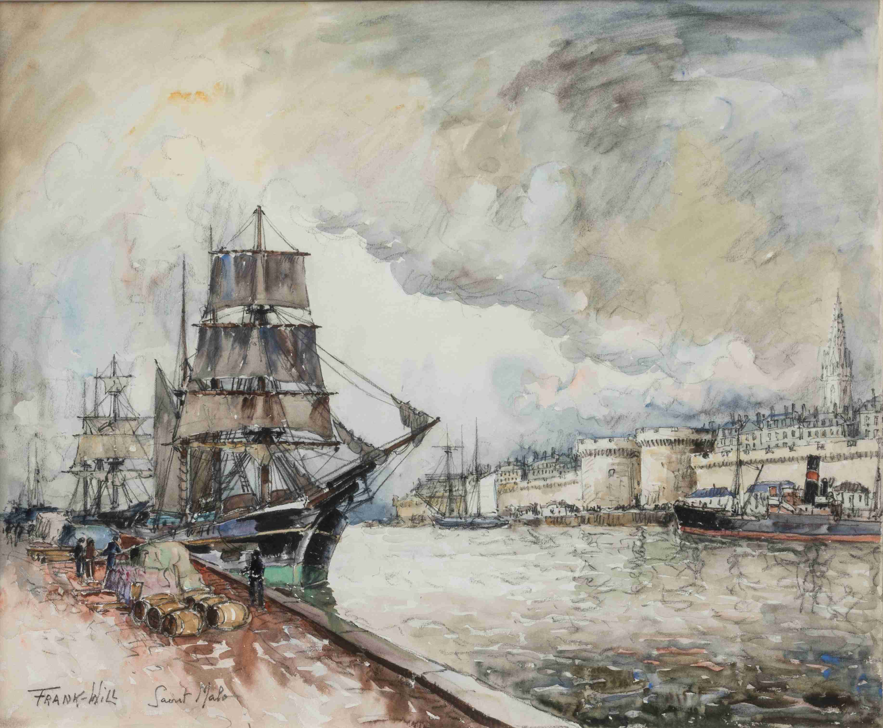 Aquarelle et fusain signée et située Saint-Malo en bas à gauche.