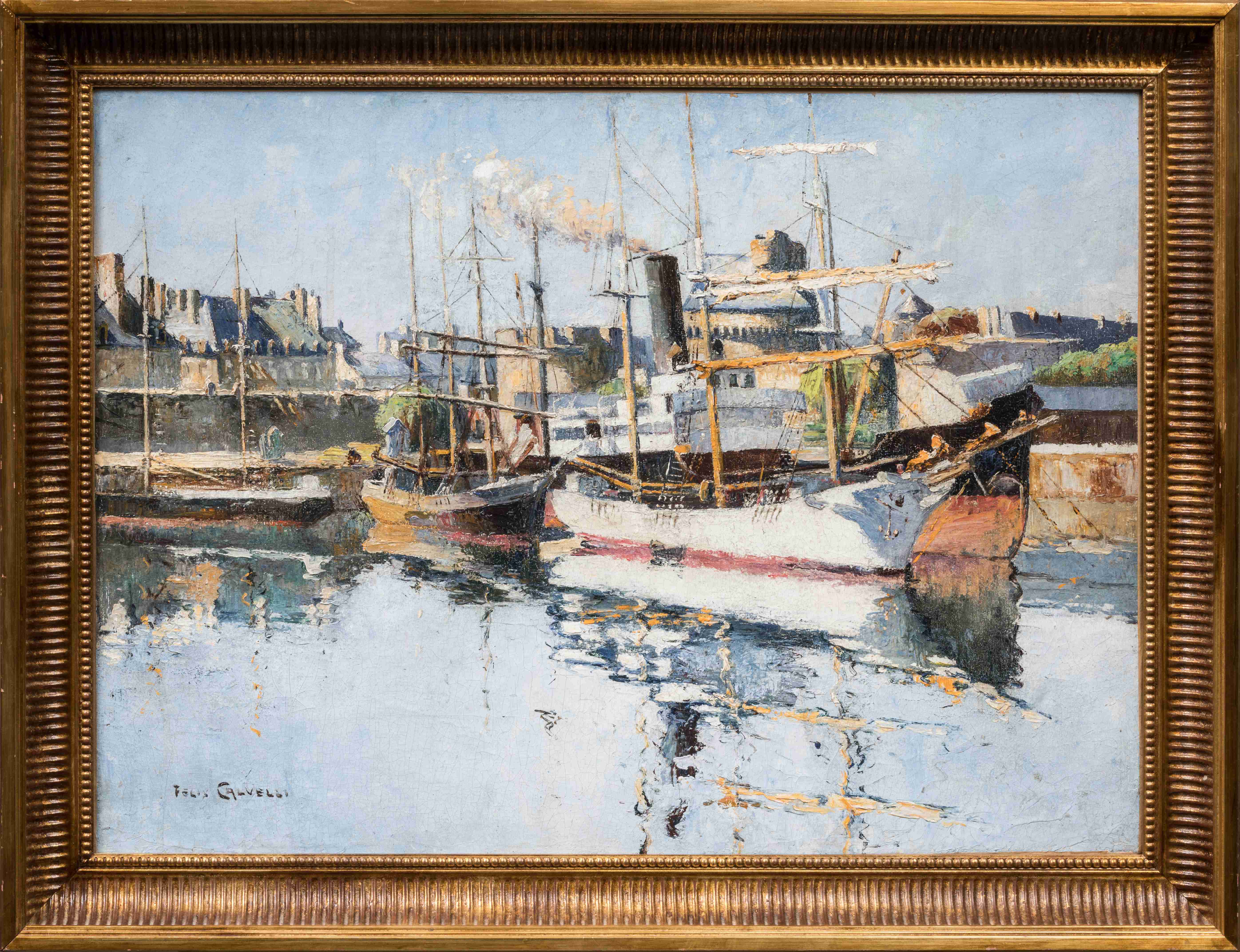 Félix CALVELLI (Ajaccio, 1873 - ? 1948) Saint-Malo : terre-neuvas et cargo à quai devant le...