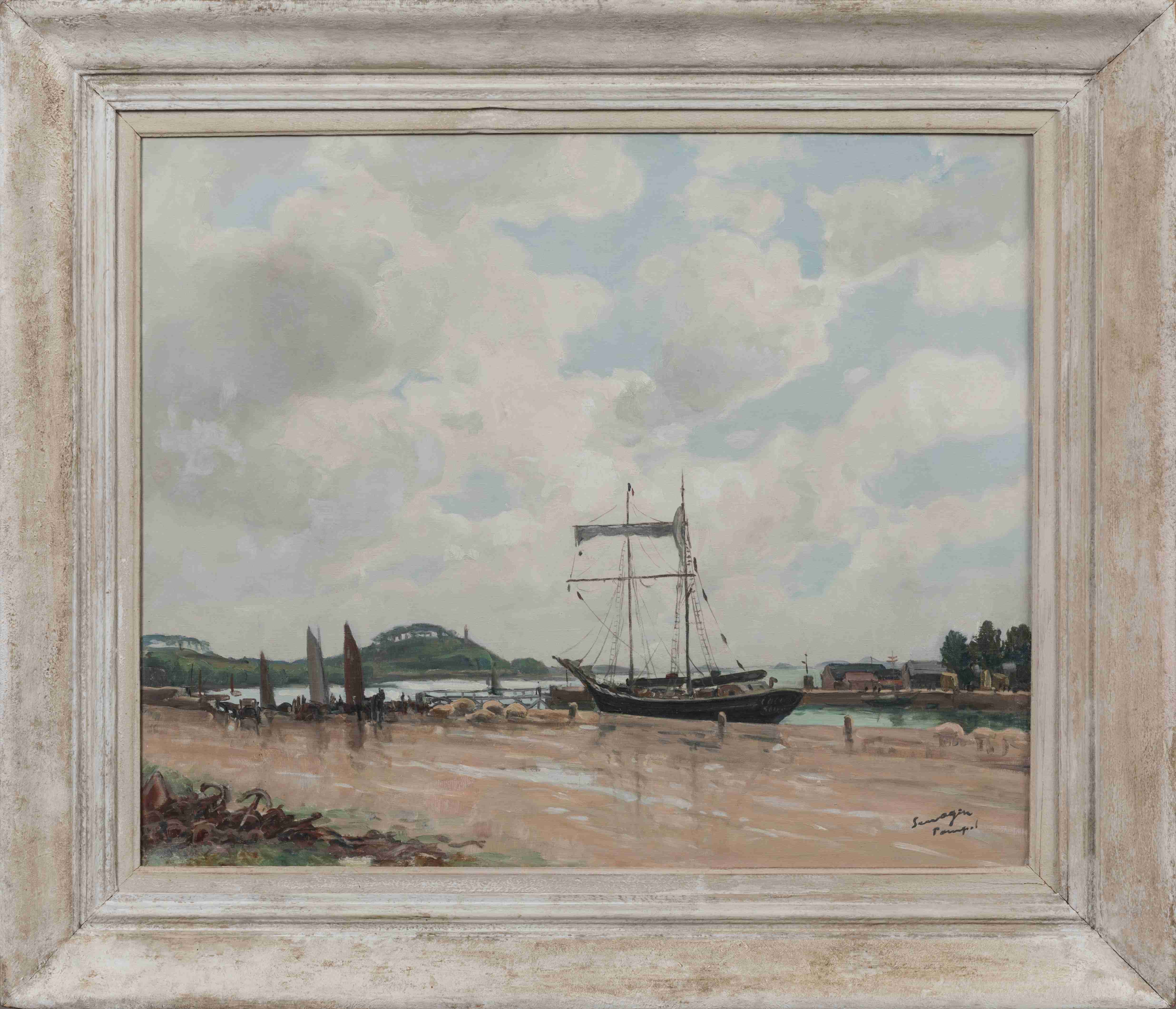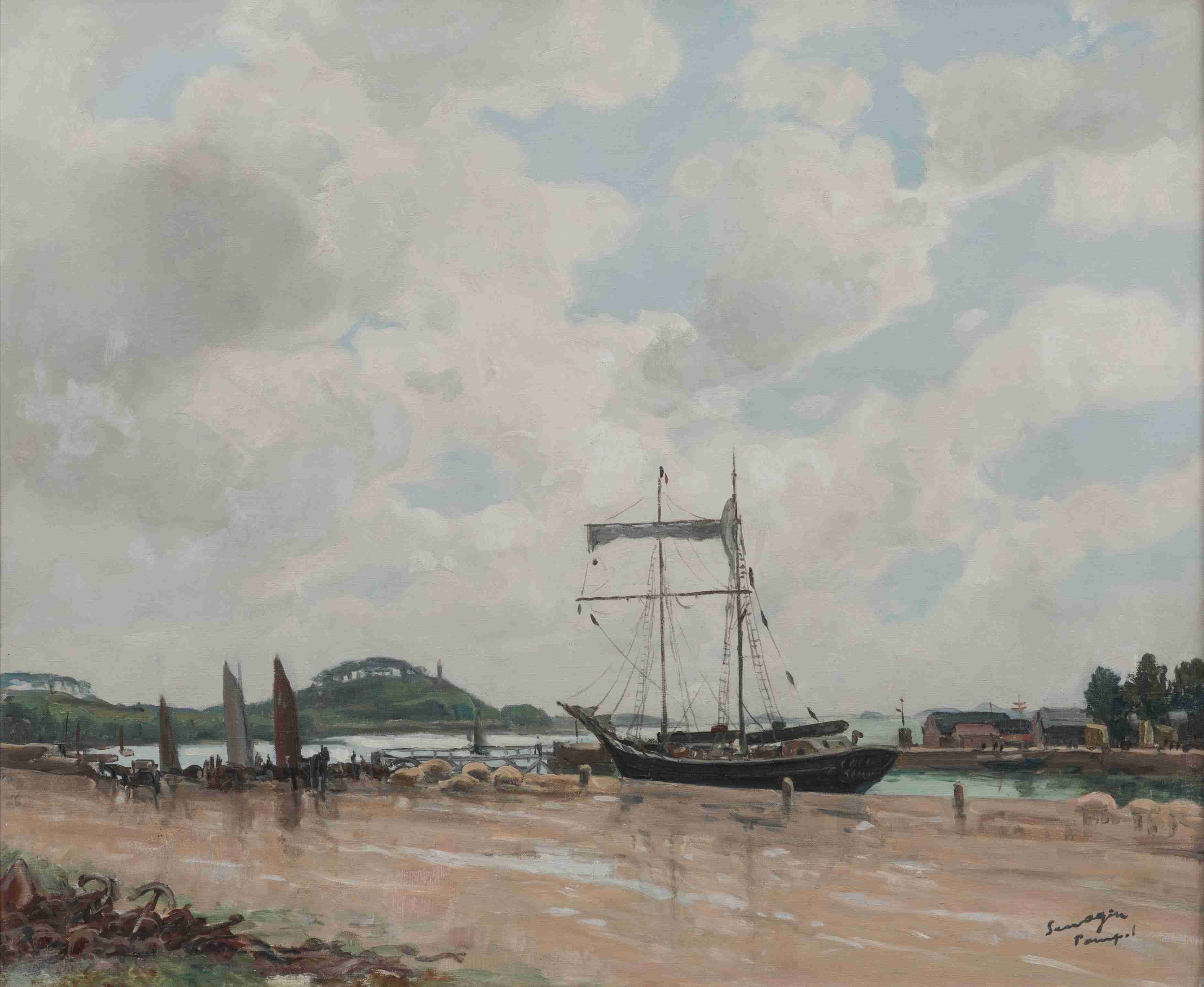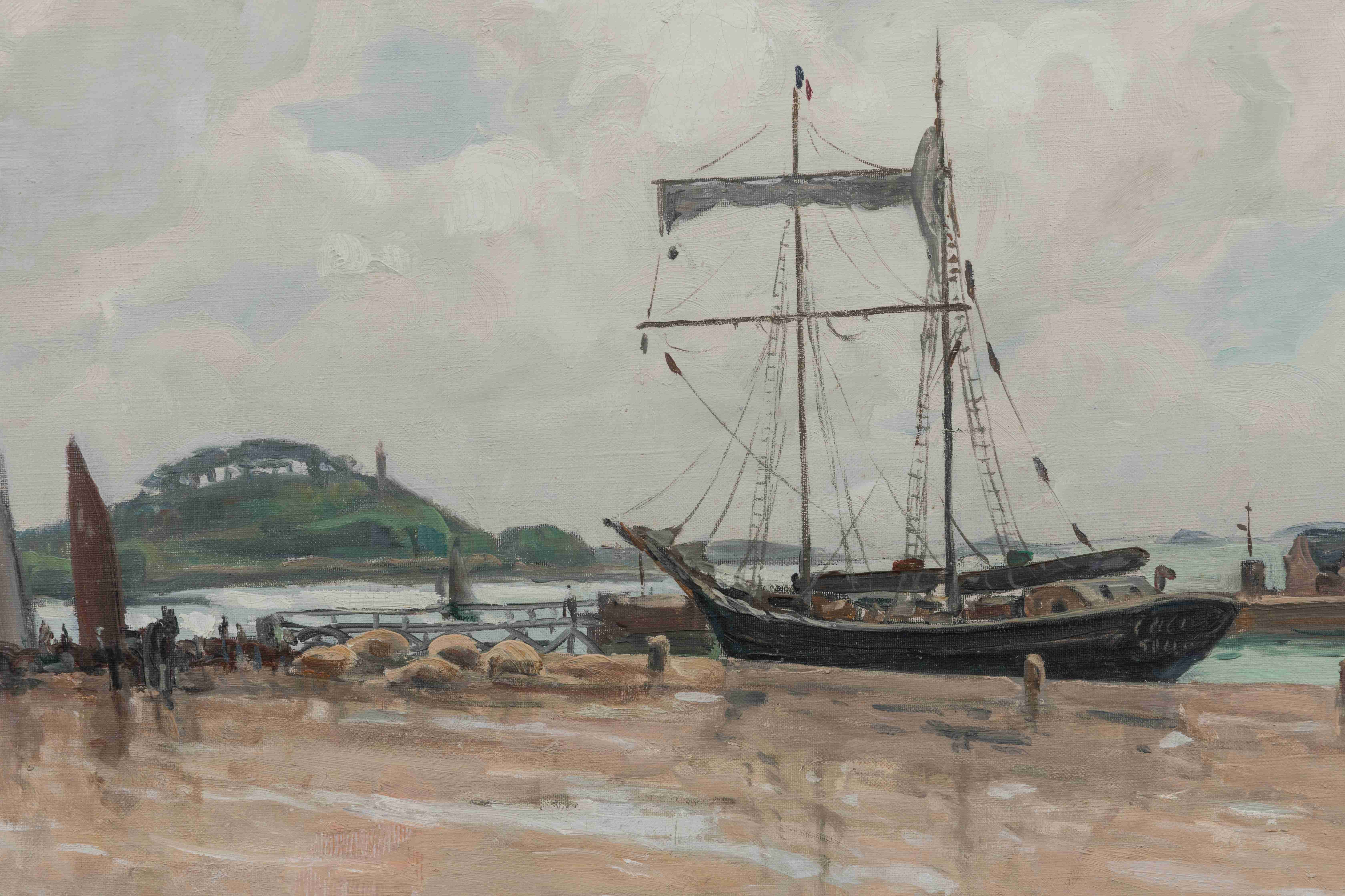 Lucien SEEVAGEN (Chaumont, 1887 - Bréhat, 1959)Après le grain : terre-neuva sur l'avant-port de Paimpol.Huile...