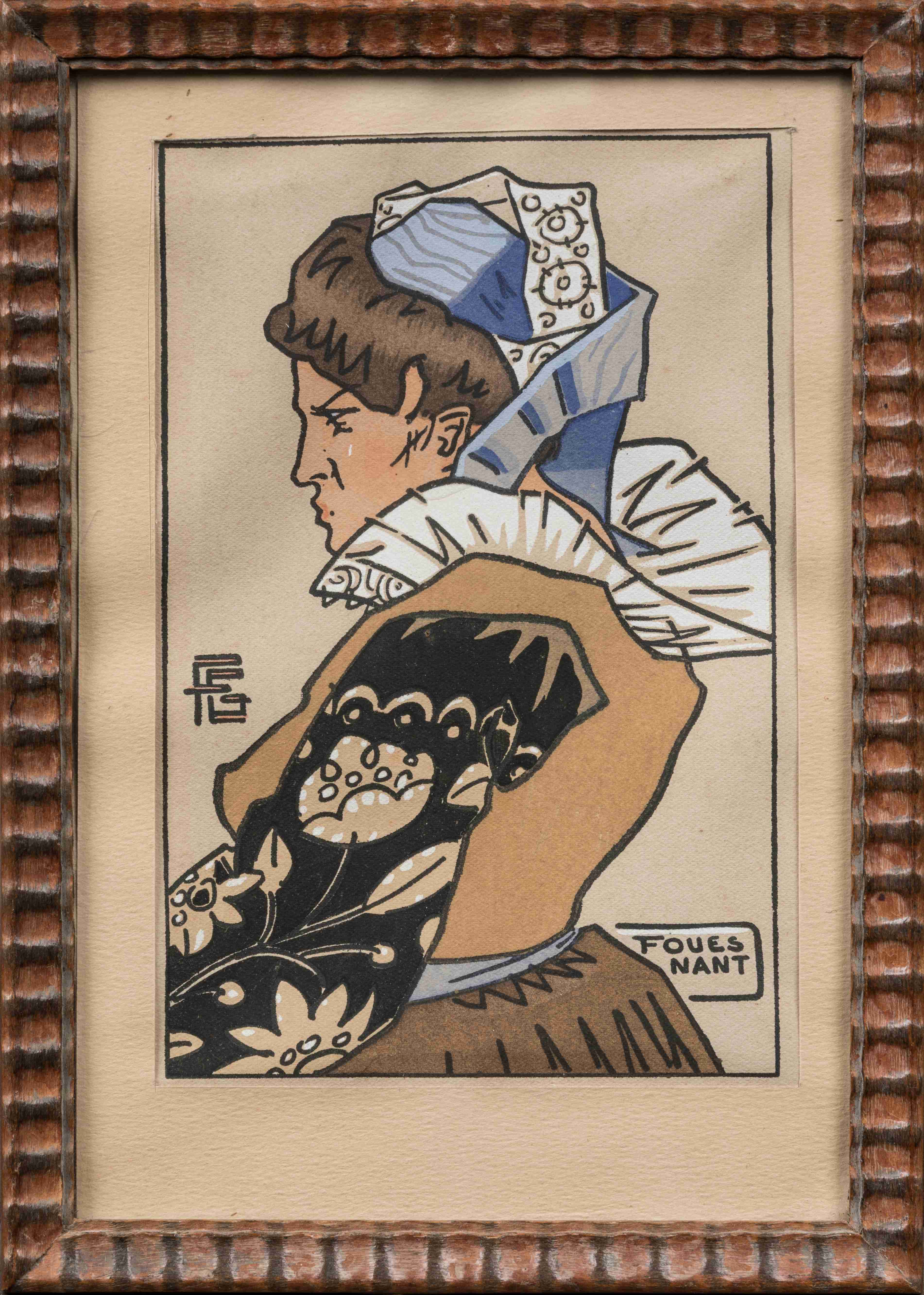 GEO-FOURRIER (Lyon, 1898 - Quimper, 1966) Georges FOURRIER, dit "Fouesnant"Gravure sur bois gouachée au pochoir....
