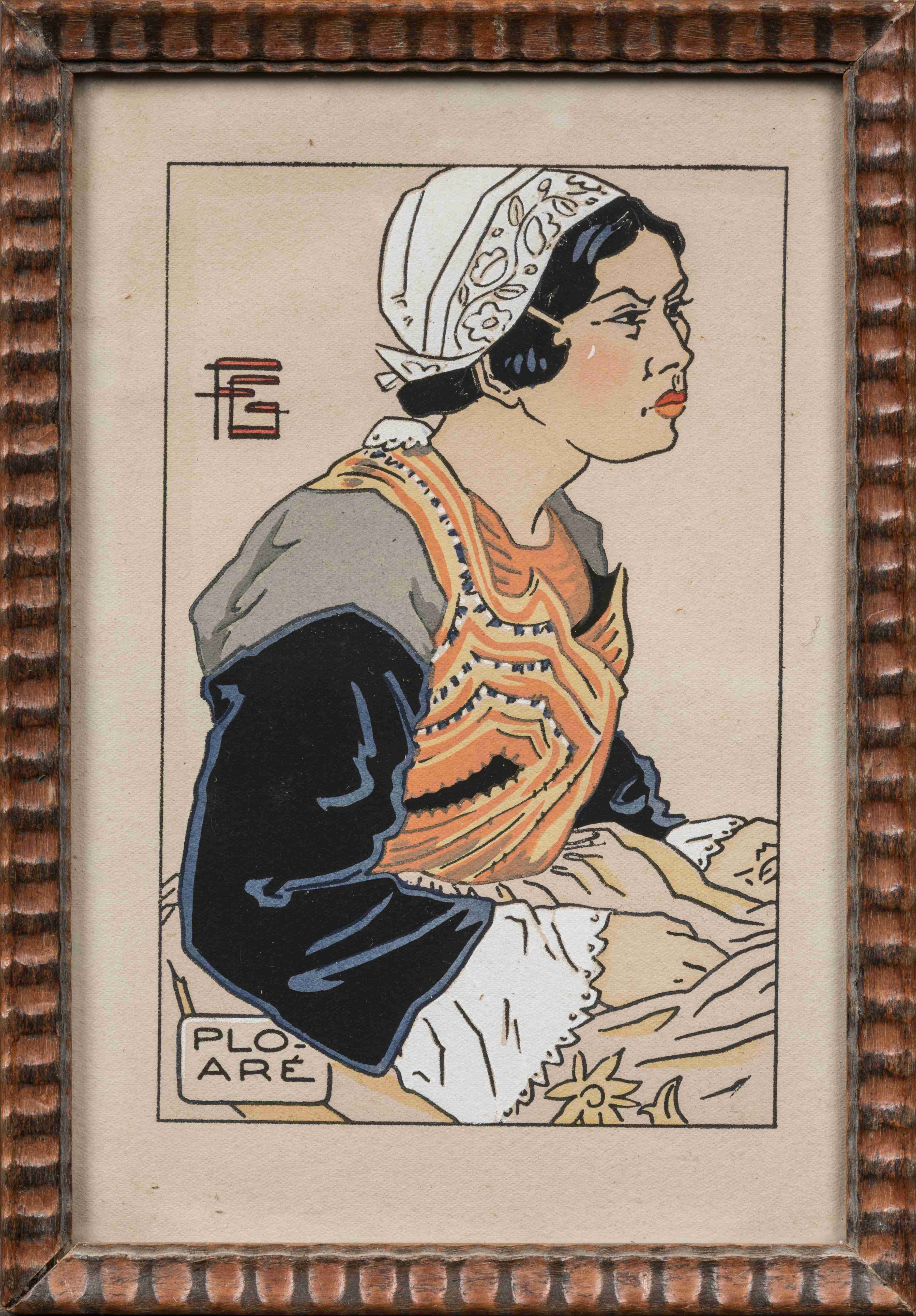 GEO-FOURRIER (Lyon, 1898 - Quimper, 1966) Georges FOURRIER, dit "Ploaré"Gravure sur bois gouachée au pochoir....