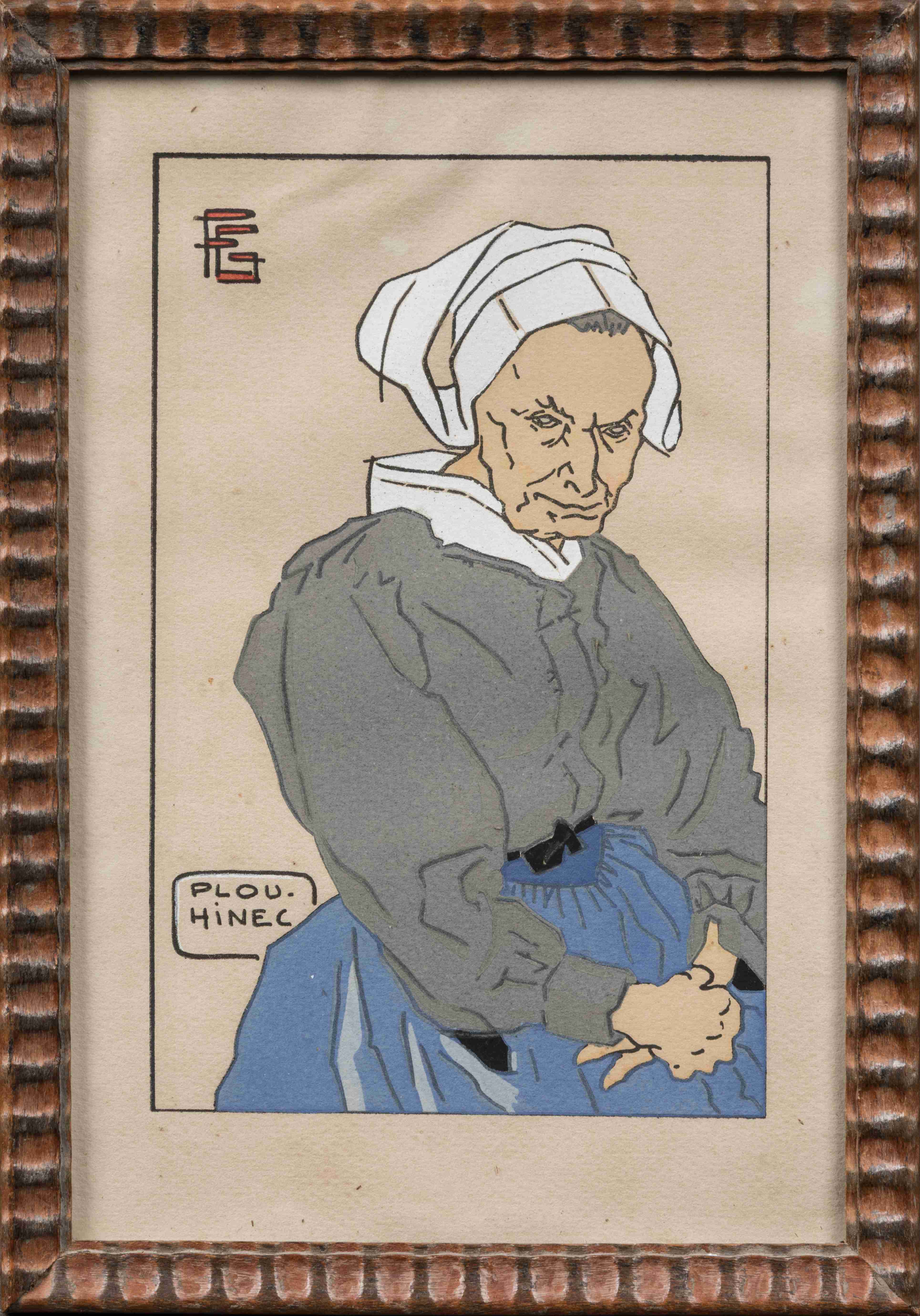 GEO-FOURRIER (Lyon, 1898 - Quimper, 1966) Georges FOURRIER, dit"Plouhinec"Gravure sur bois gouachée au pochoir. Edition...