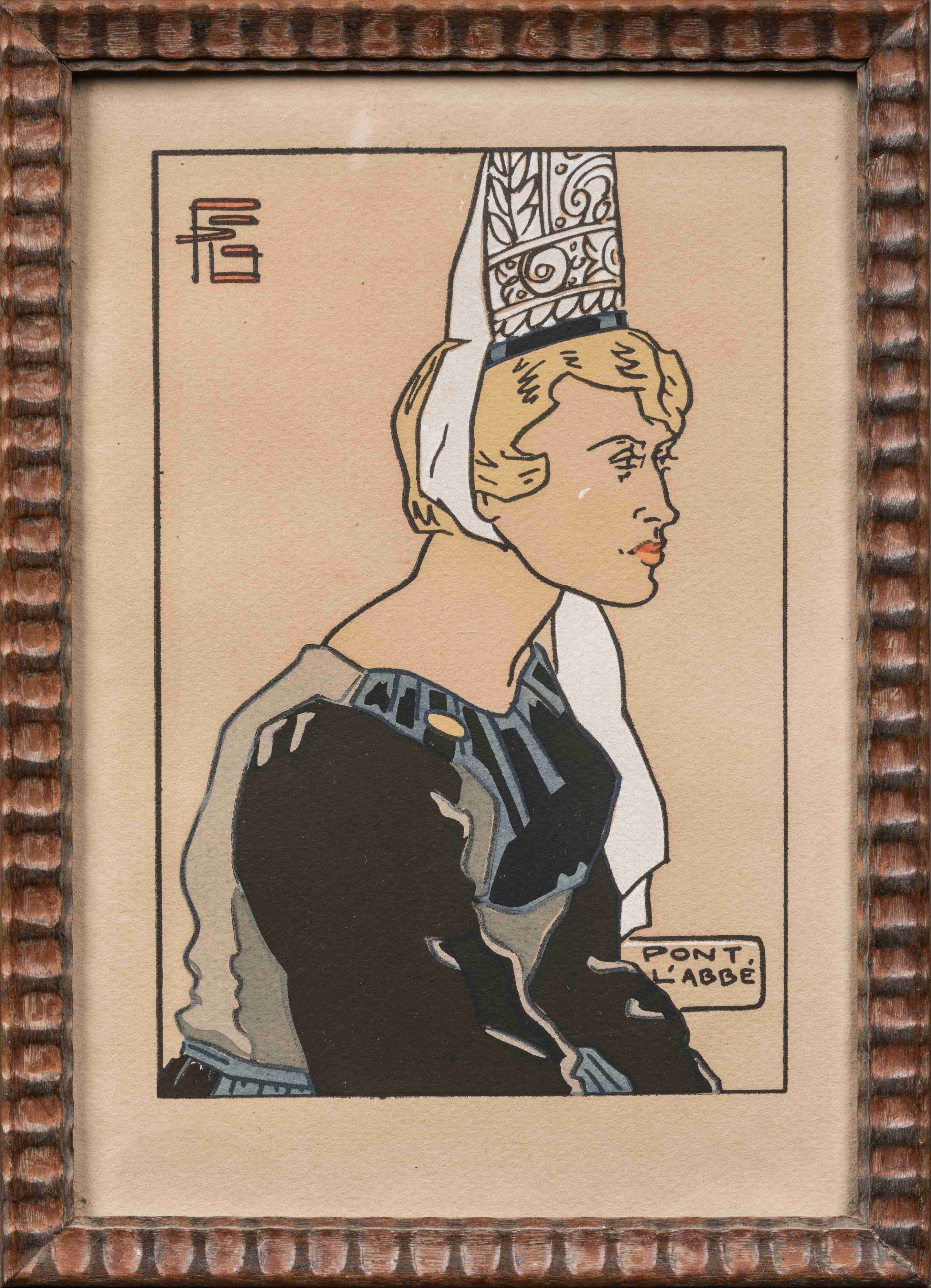 GEO-FOURRIER (Lyon, 1898 - Quimper, 1966) Georges FOURRIER, dit "Pont L'Abbé"Gravure sur bois gouachée au...