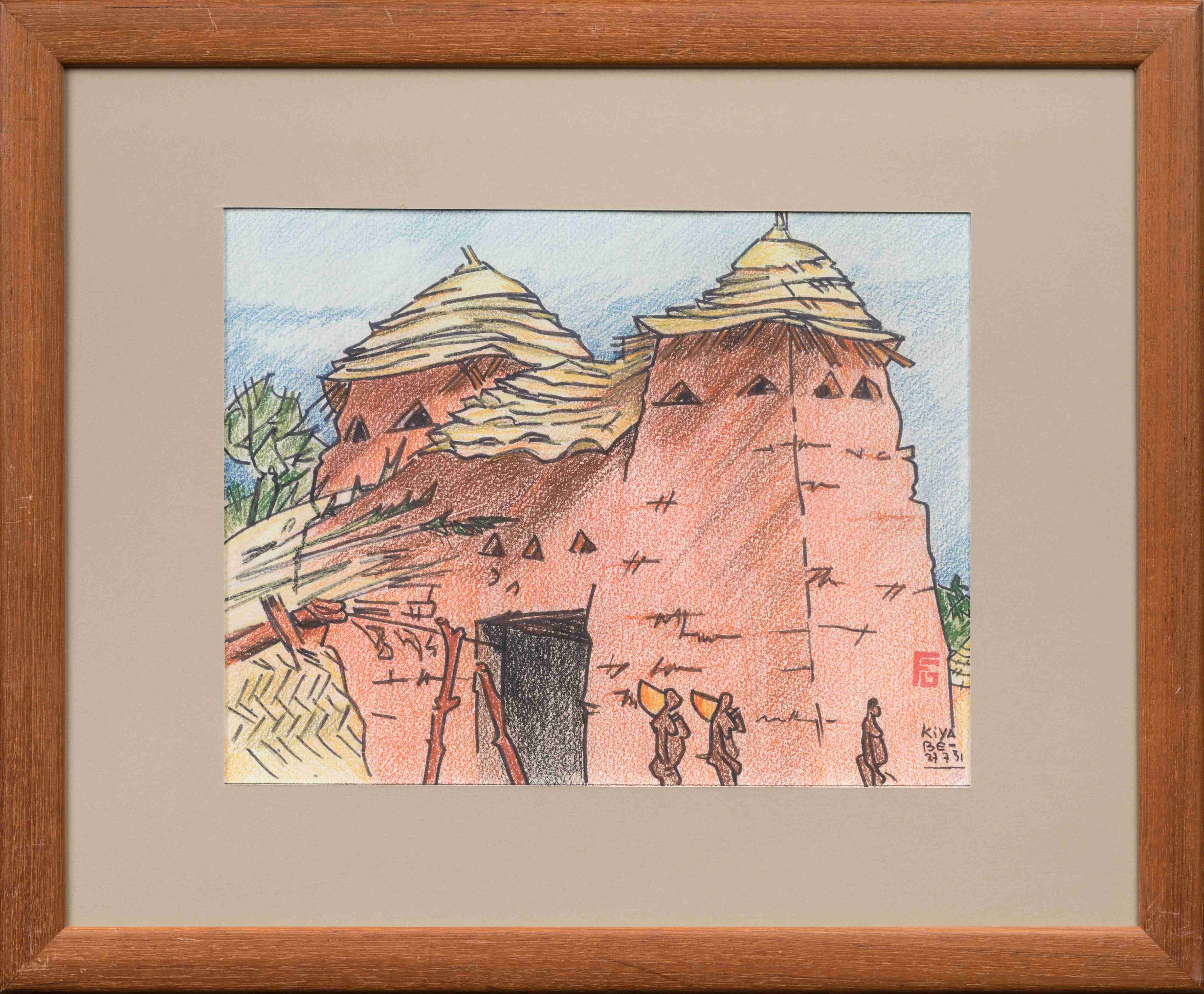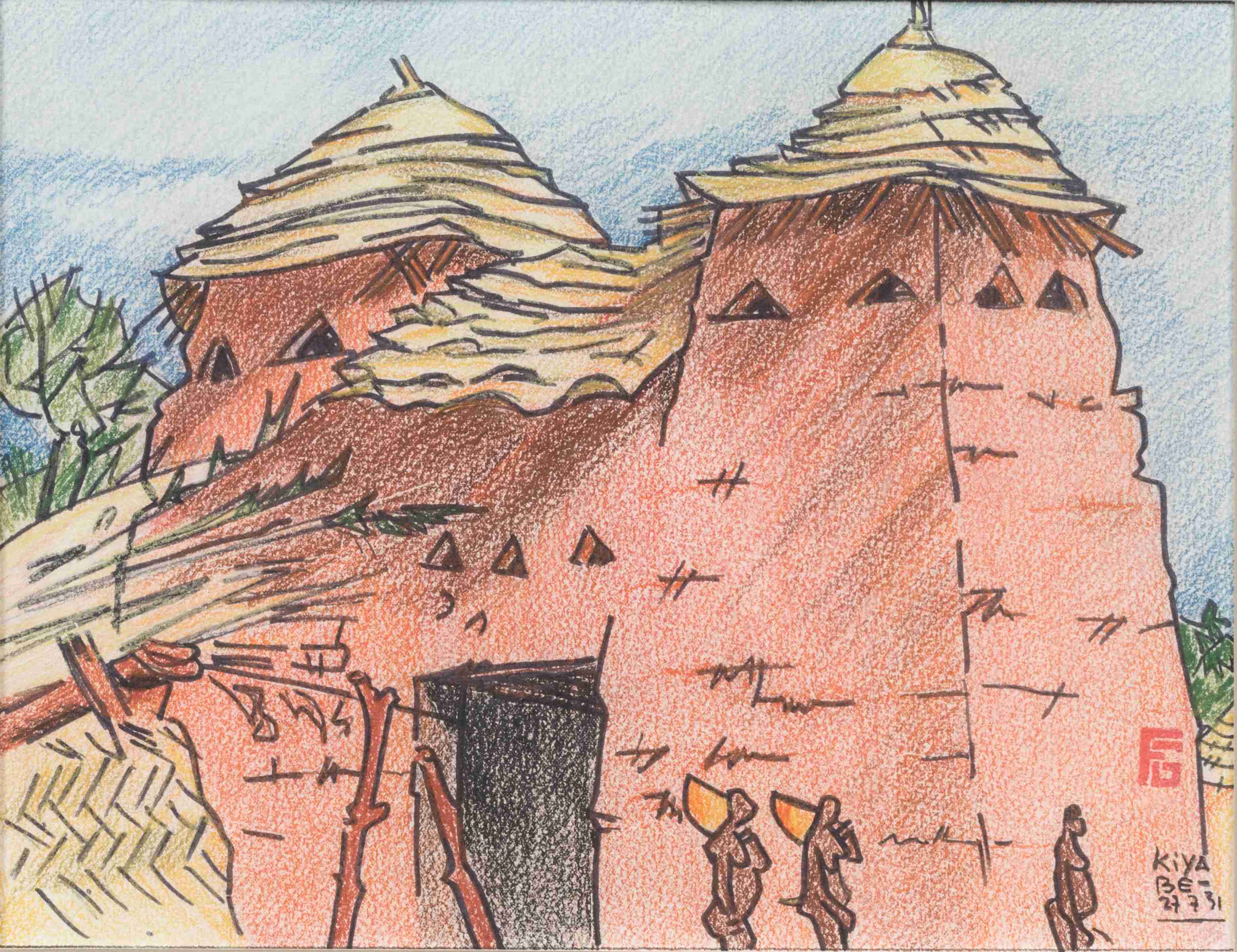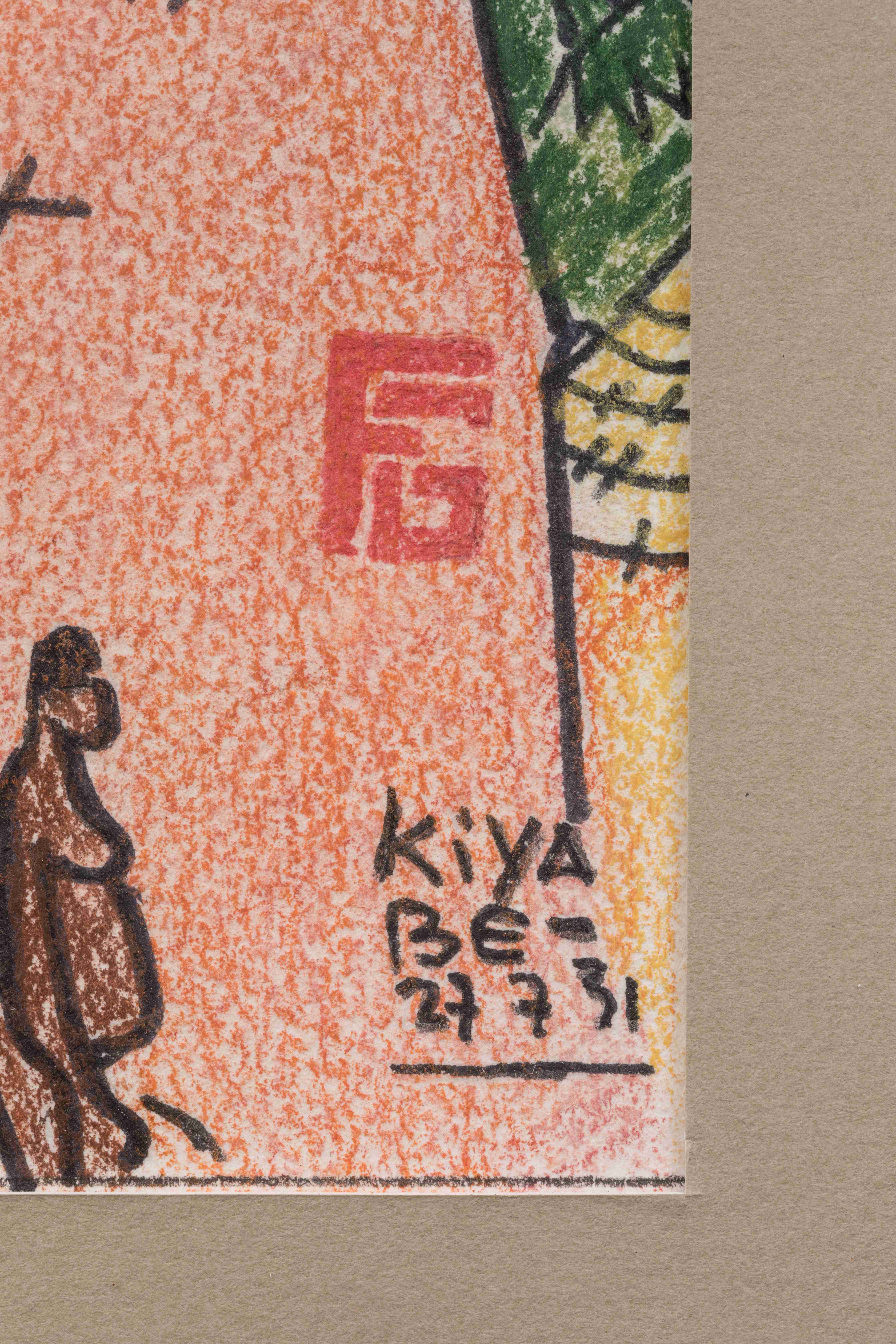 Pastel et traits d'encre monogrammé, situé "Kiyabe" et daté 27 7 31 en bas à droite.