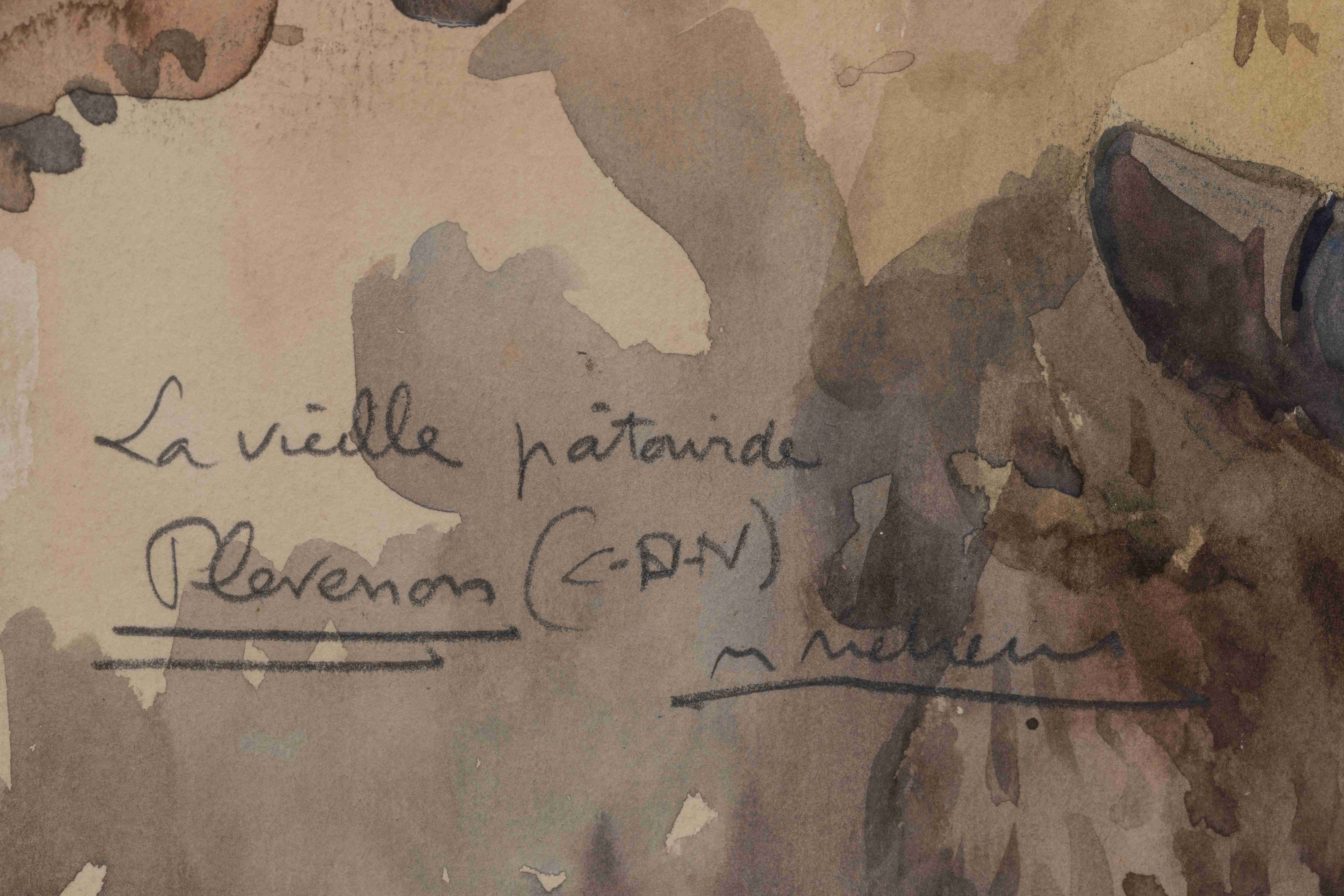 Aquarelle titrée, située "Plévenon (C-D-N)" et signée "M Méheut" en bas à gauche. Monogrammée en bas à droite.
