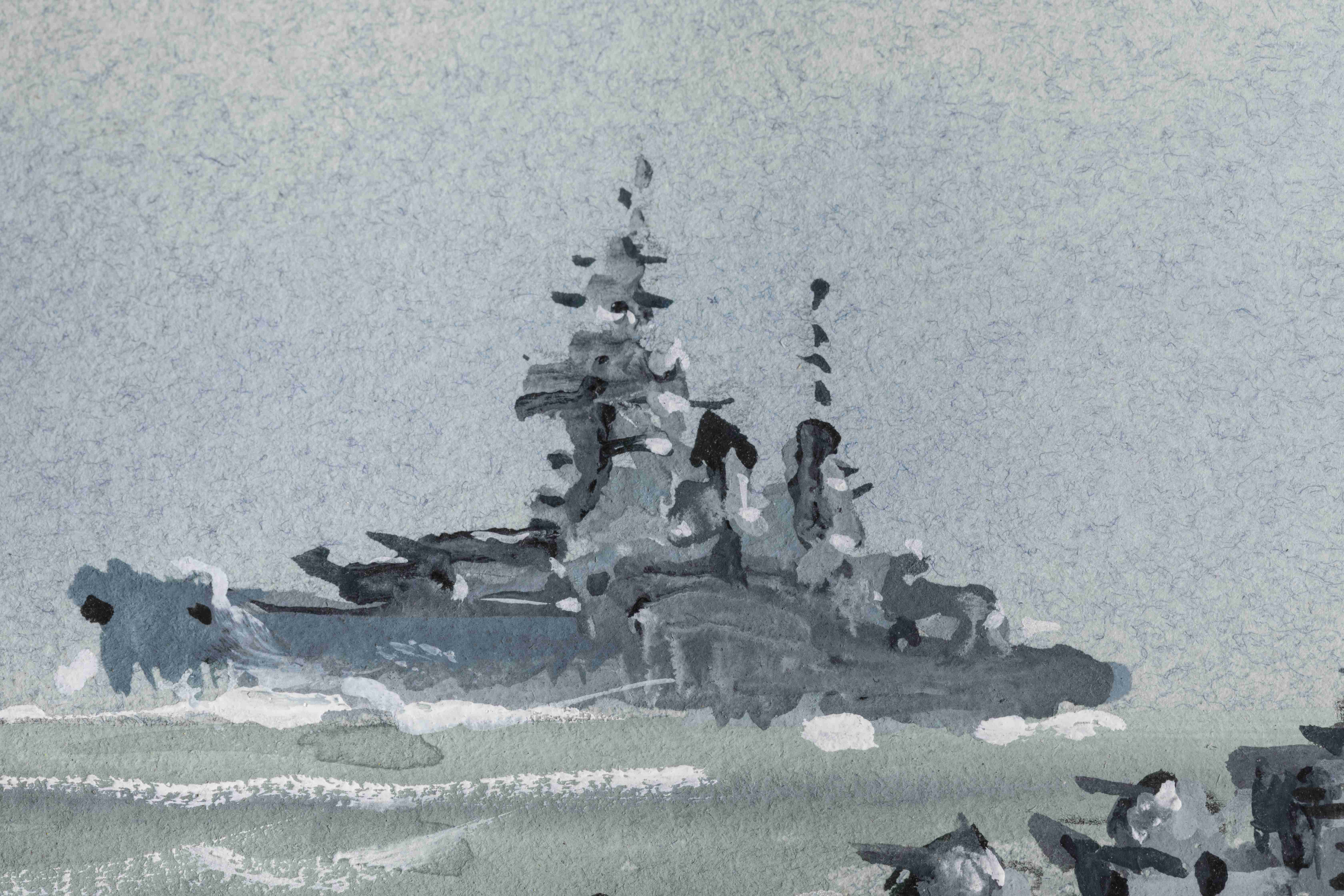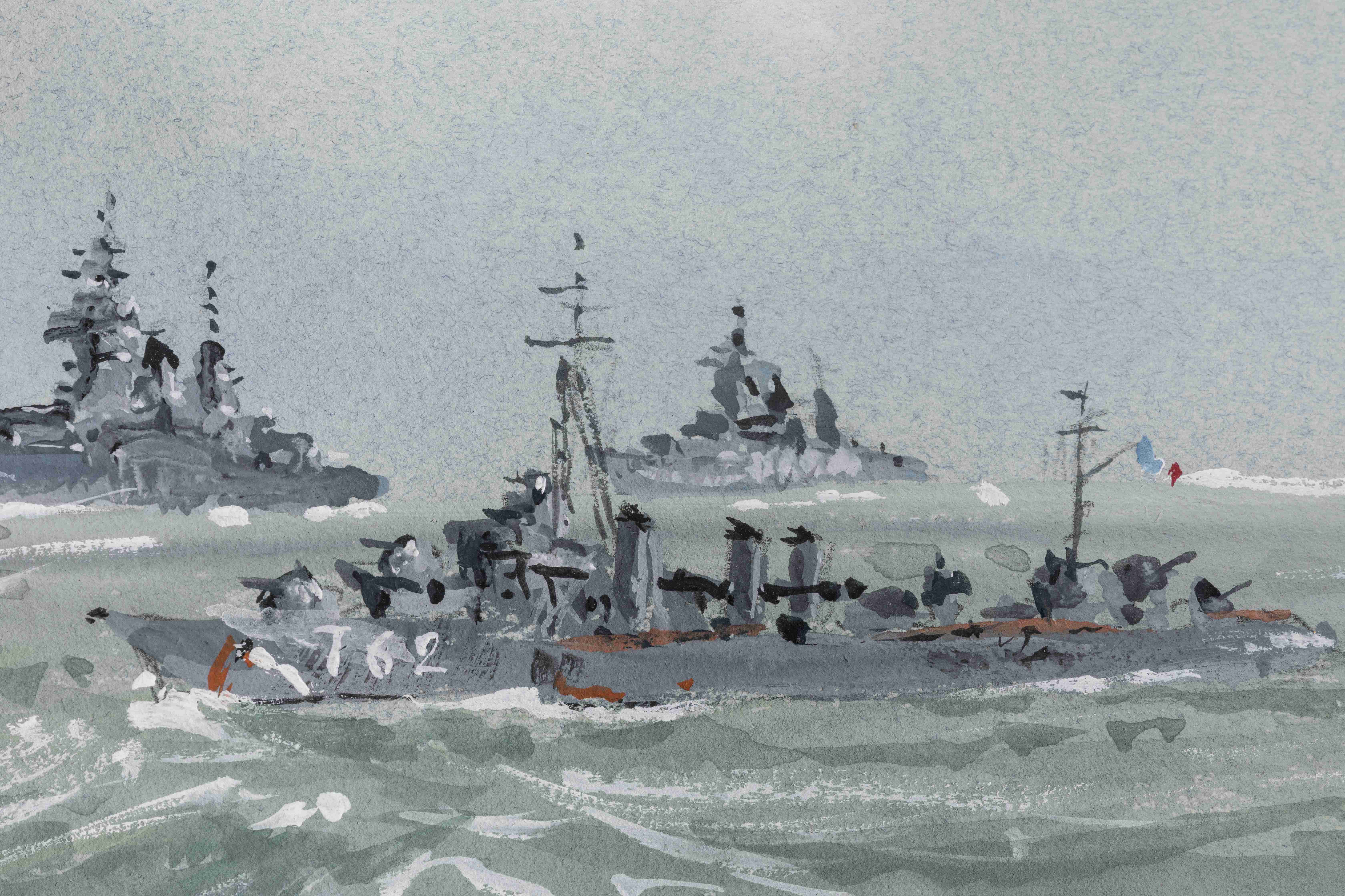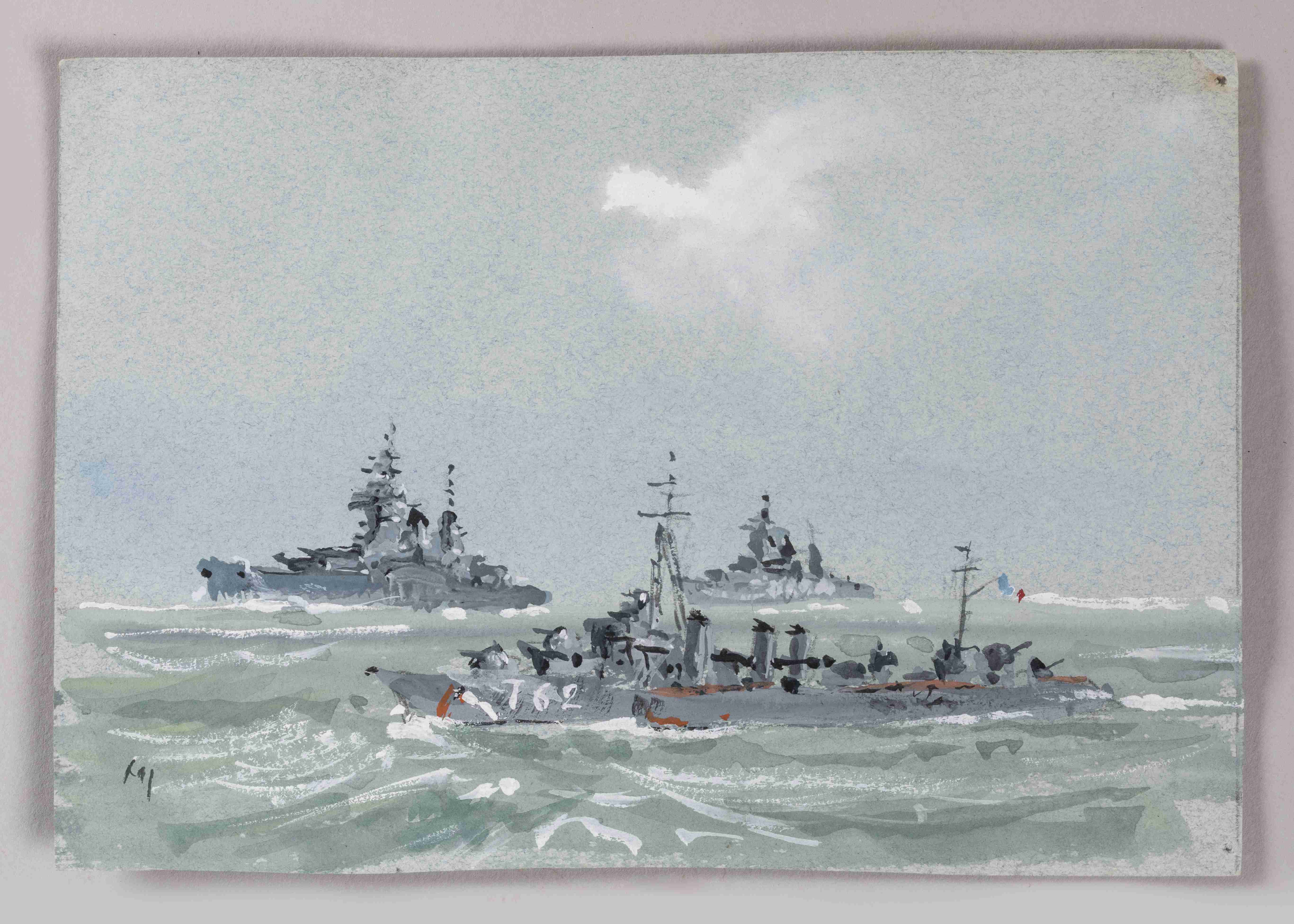 Cette gouache à été réalisée avant le départ du Strasbourg et du Dunkerque pour la Méditerranée à la fin du mois d'avril 1940. C'est probablement le dernier portrait du torpilleur Siroco avant qu'il ne soit coulé par les Allemands le 31 mai 1940 au cours de la bataille de Dunkerque. A son bord, près de 680 hommes perdront la vie.