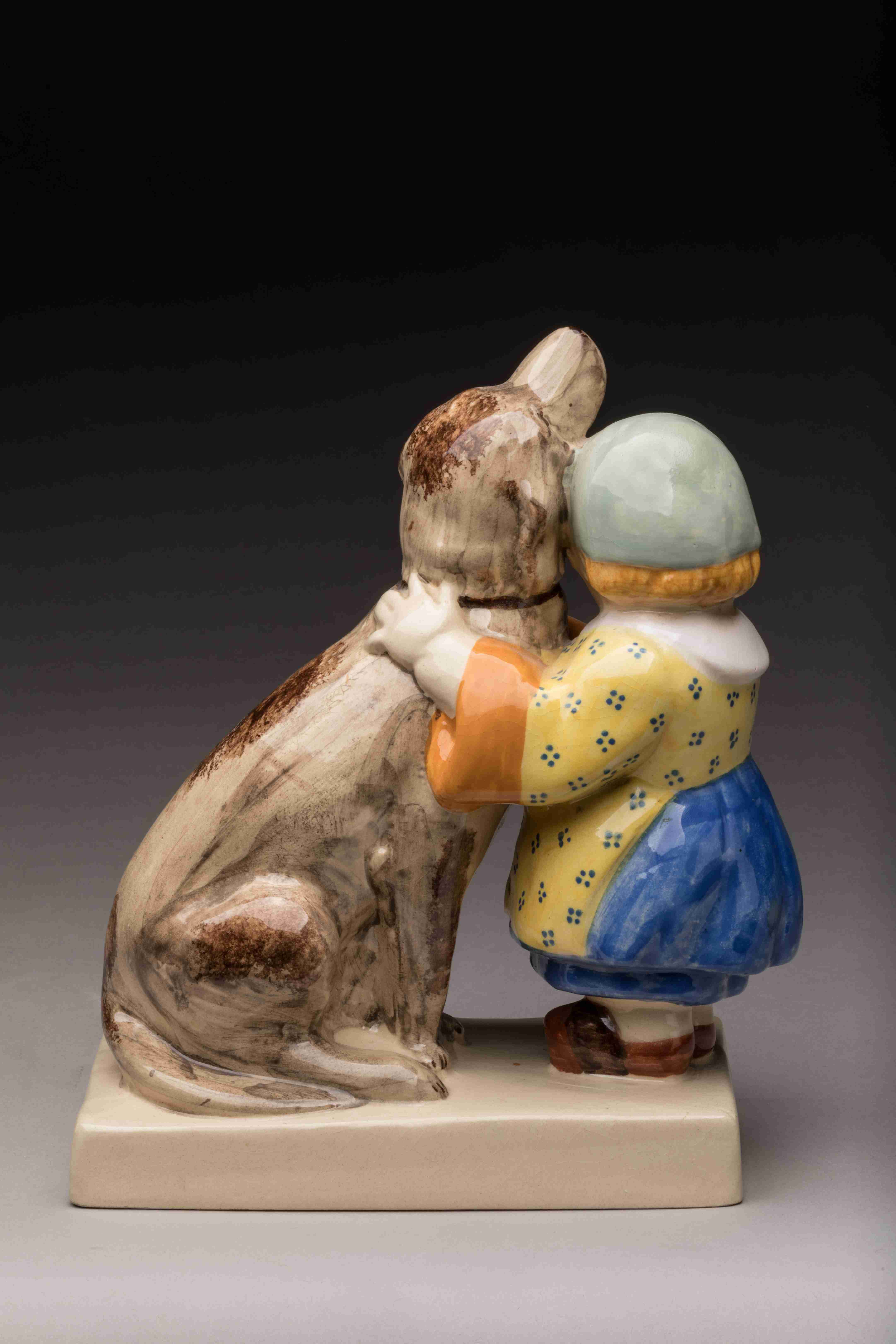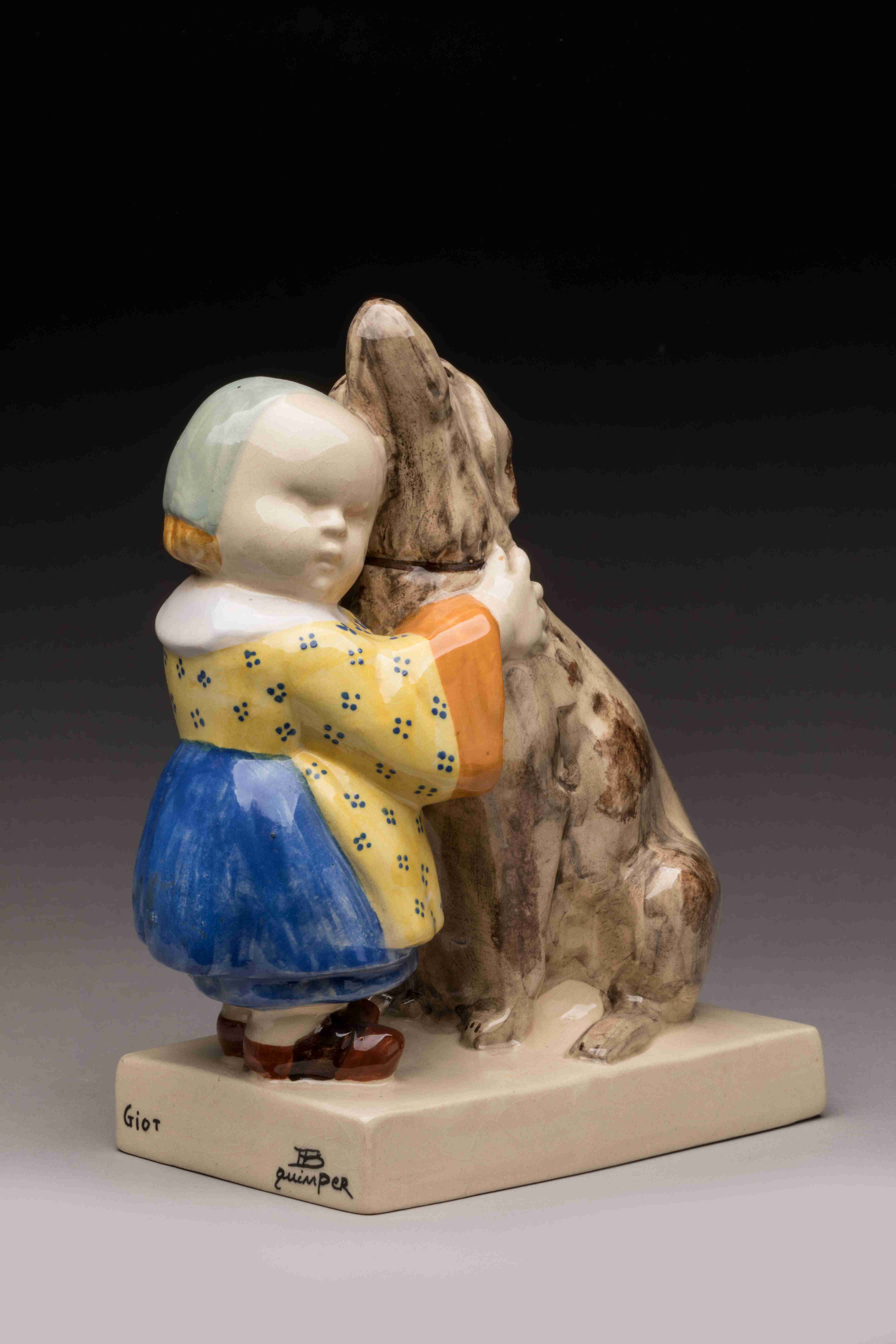 Marius GIOT (Etoges, 1879 - Epernay, 1980) - HB, Quimper.Bébé au chien. Rare groupe en...