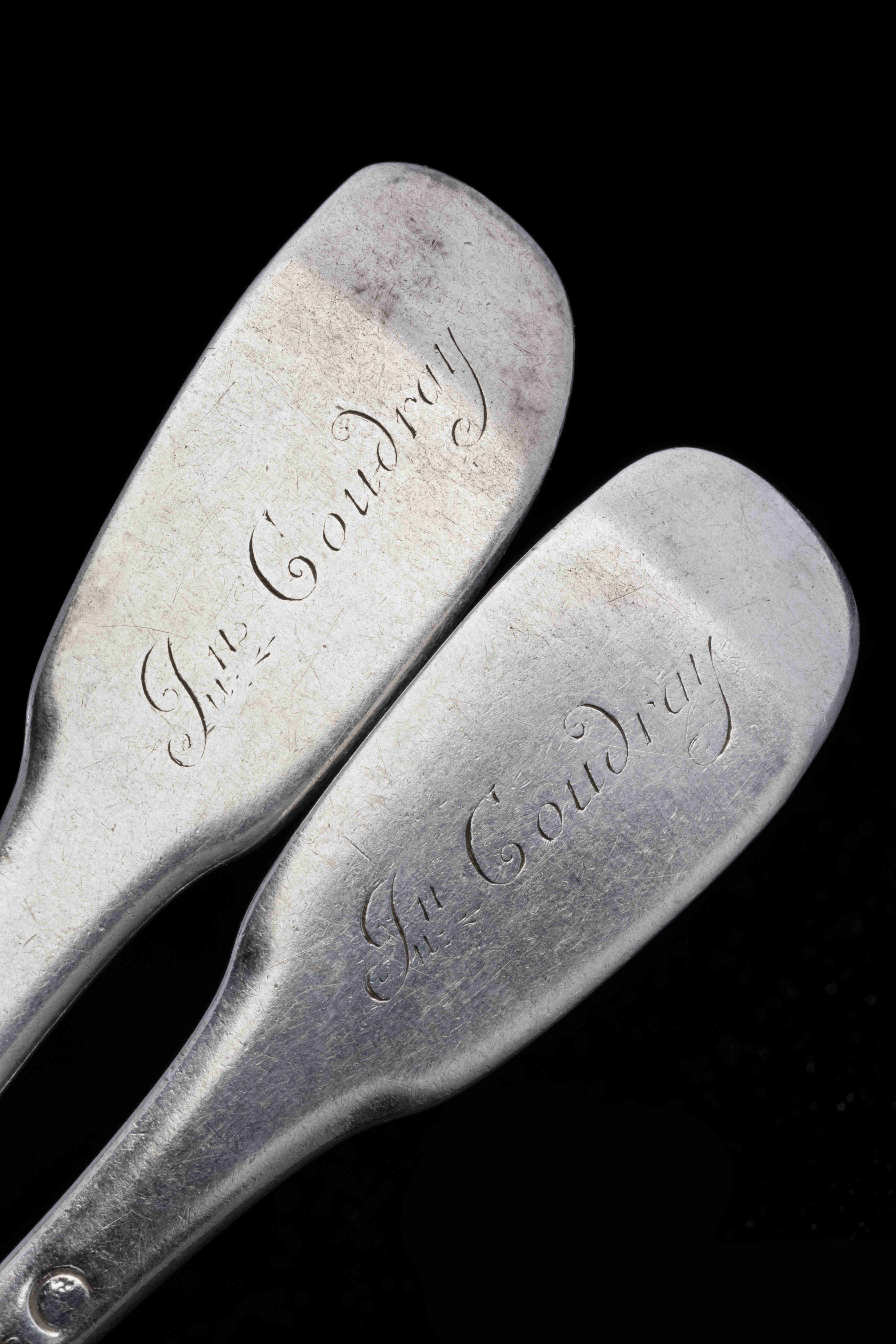 RENNES. COUVERT en argent, modèle uniplat. La spatule gravée "Jun Goudray".