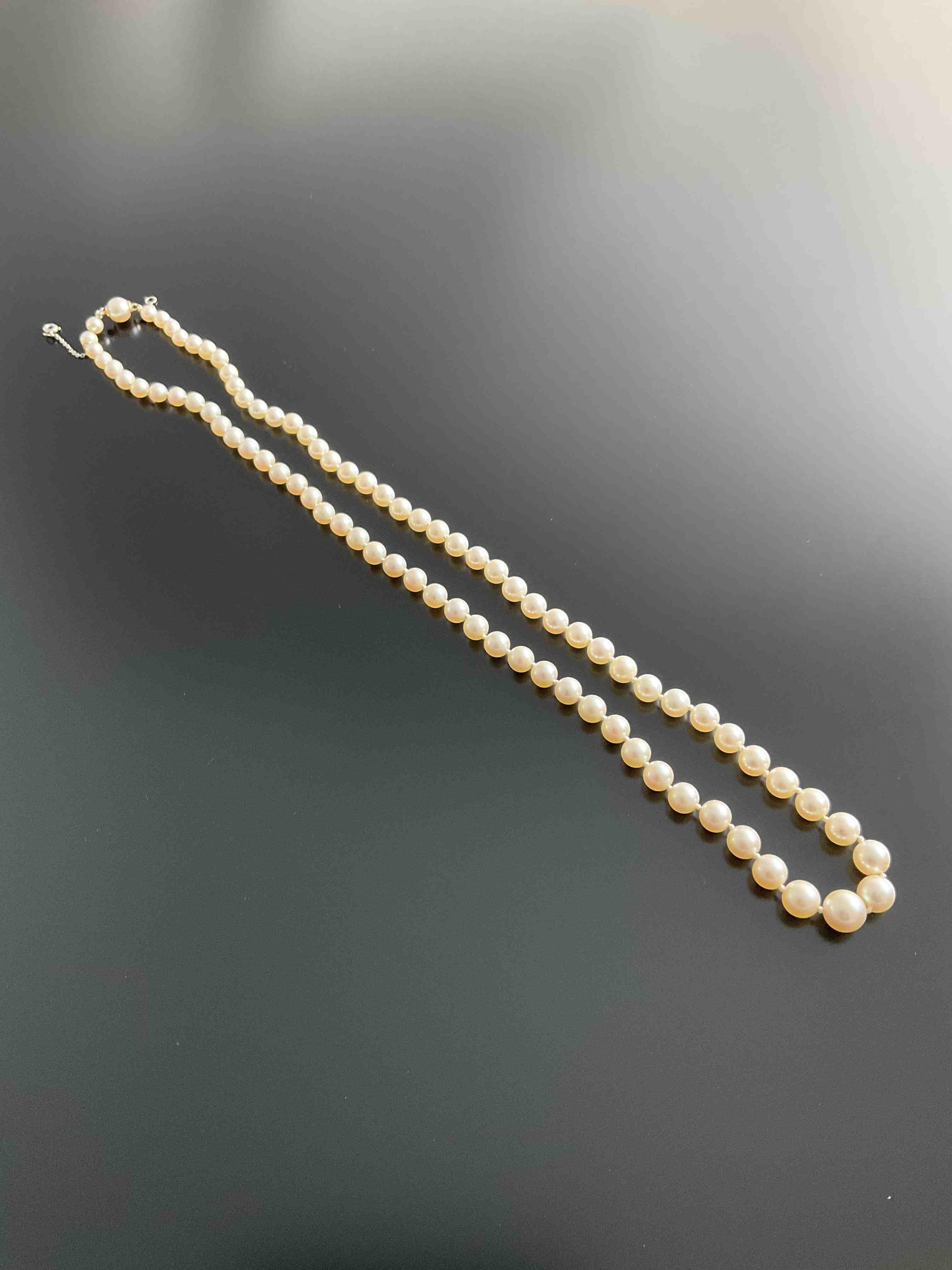 COLLIER DE 83 PERLES de culture disposées en chute. Troisième quart du XXe siècle. Longueur : 58 cm environ.