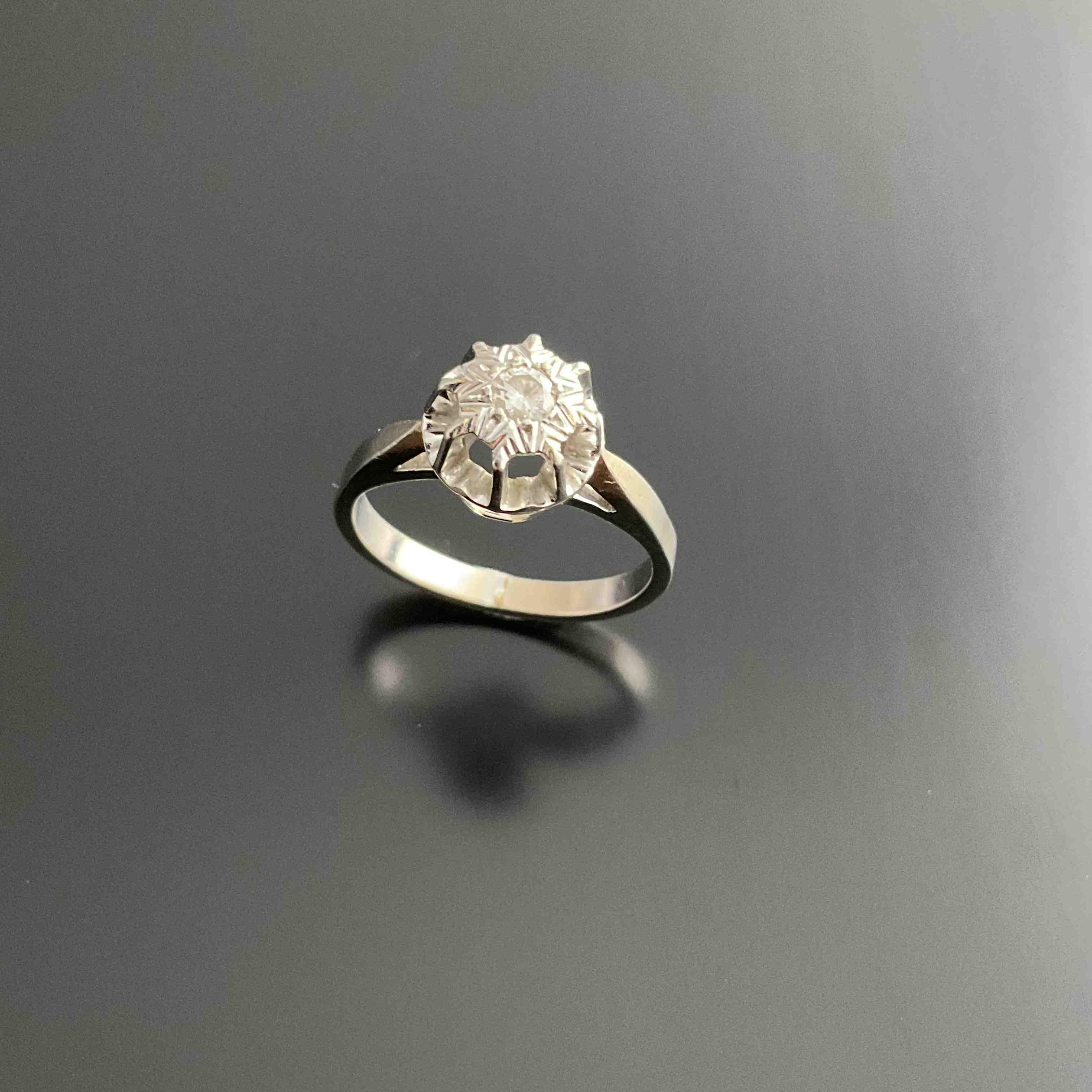 BAGUE en or gris ornée d'un DIAMANT solitaire d'environ 0,15-0,18 carat.