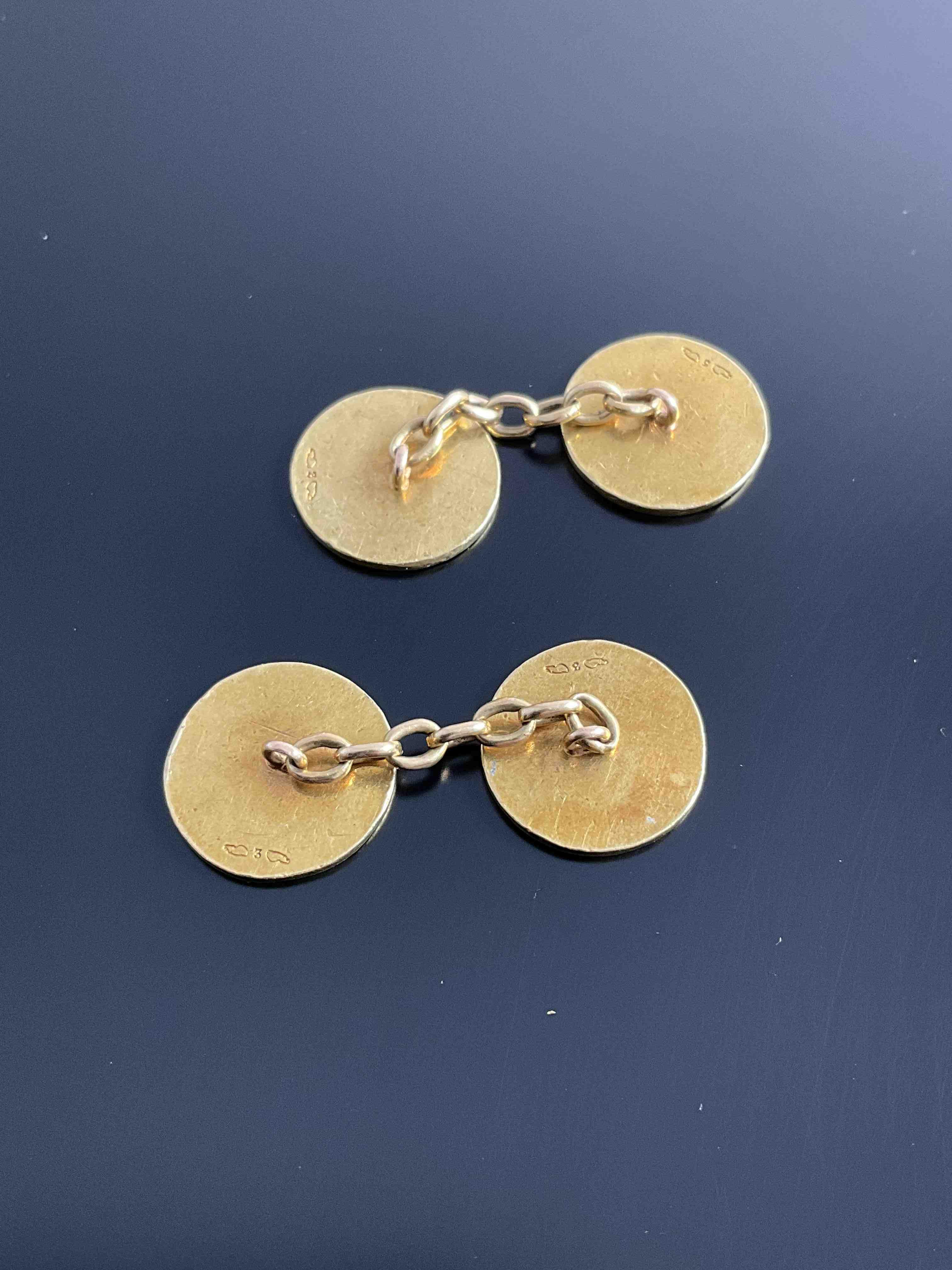 PAIRE de BOUTONS DE MANCHETTES en or jaune adoptant la forme d'une monnaie antique figurant...