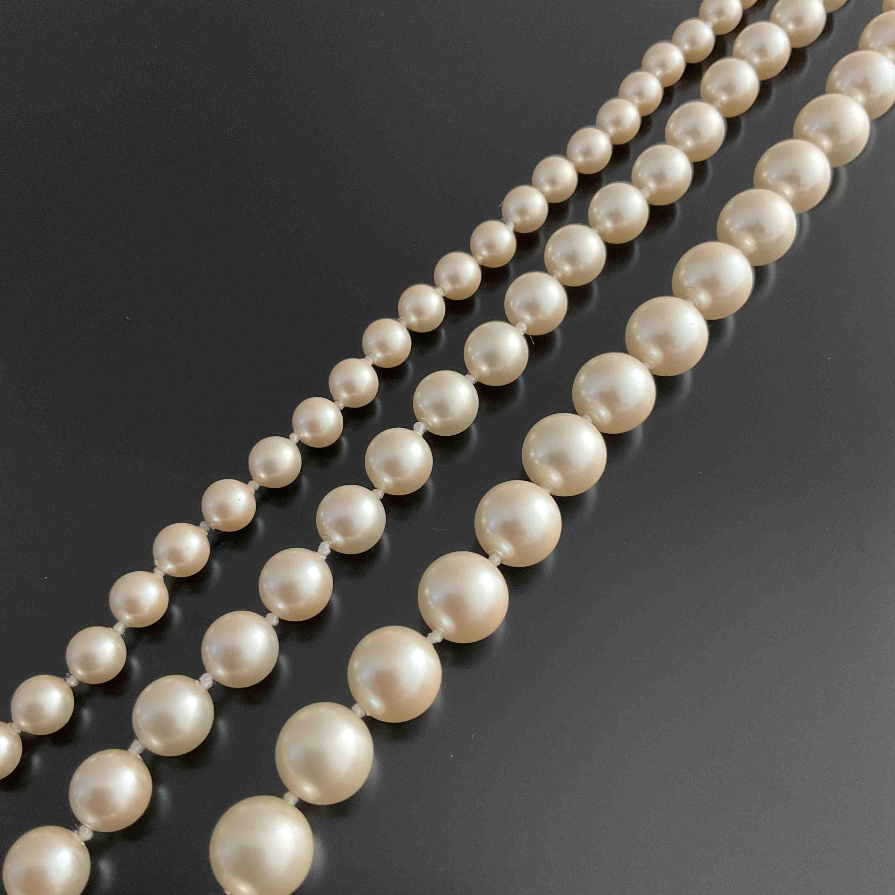 DIOR. COLLIER TROIX RANGS choker de PERLES blanches (de Majorque ?) de trois diamètres différents....
