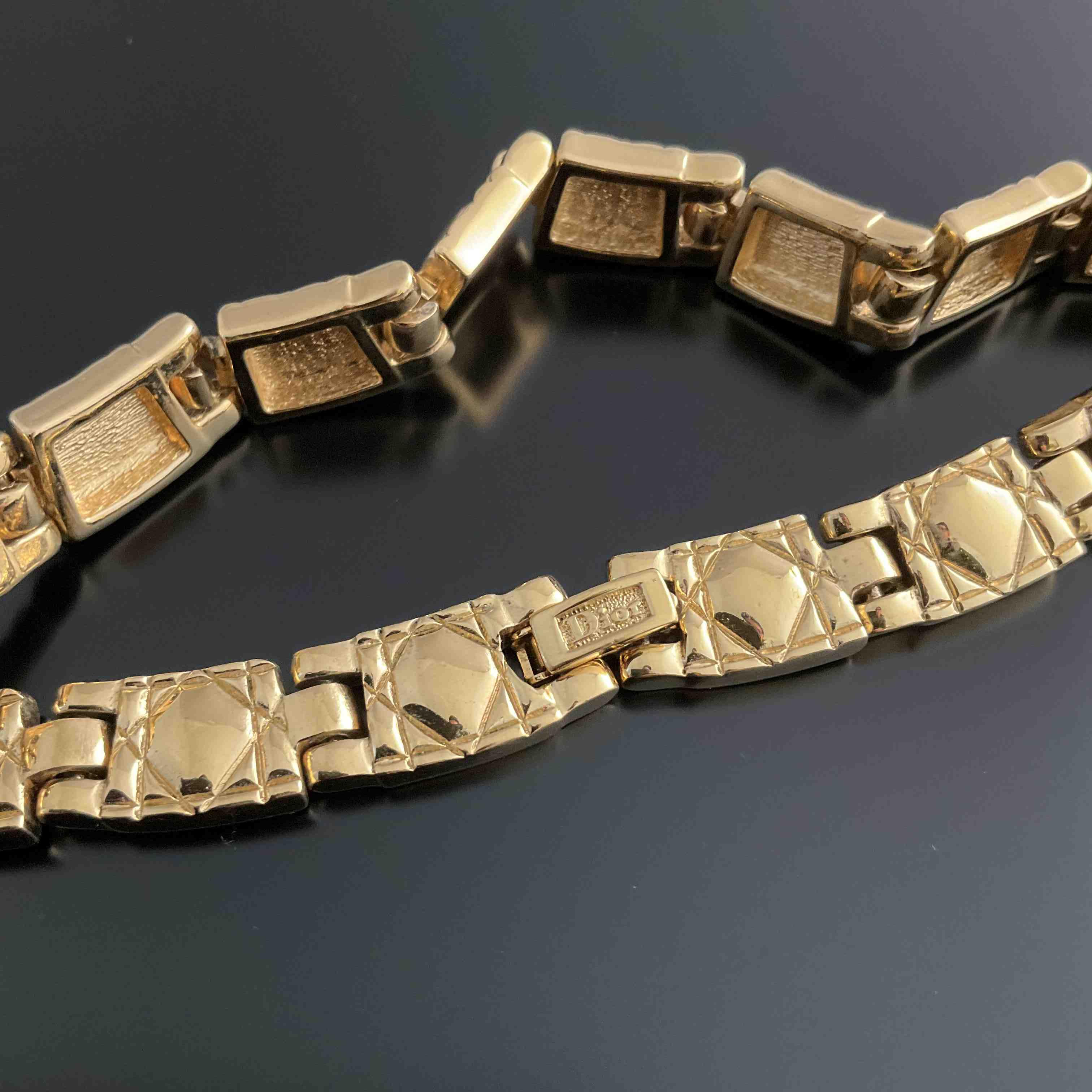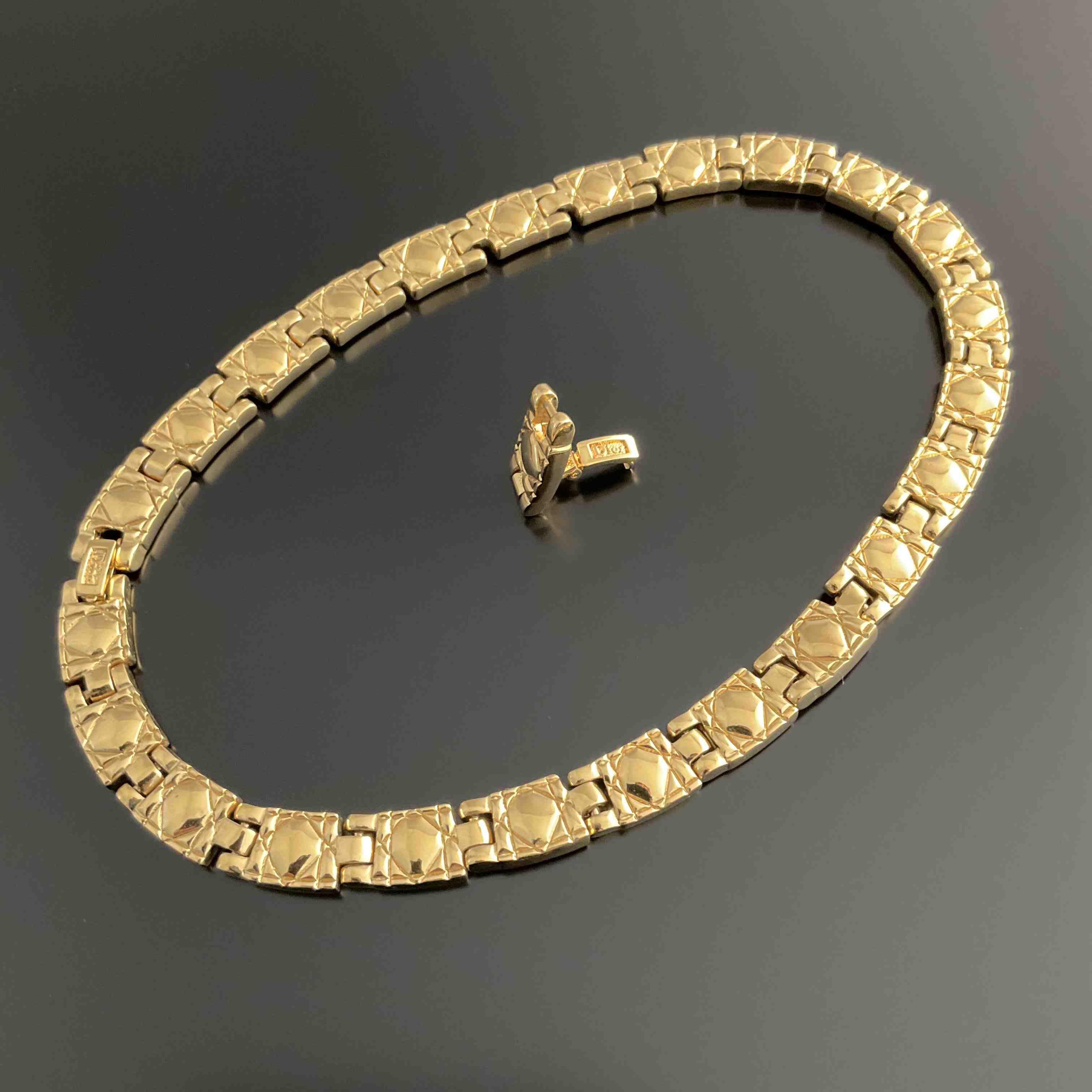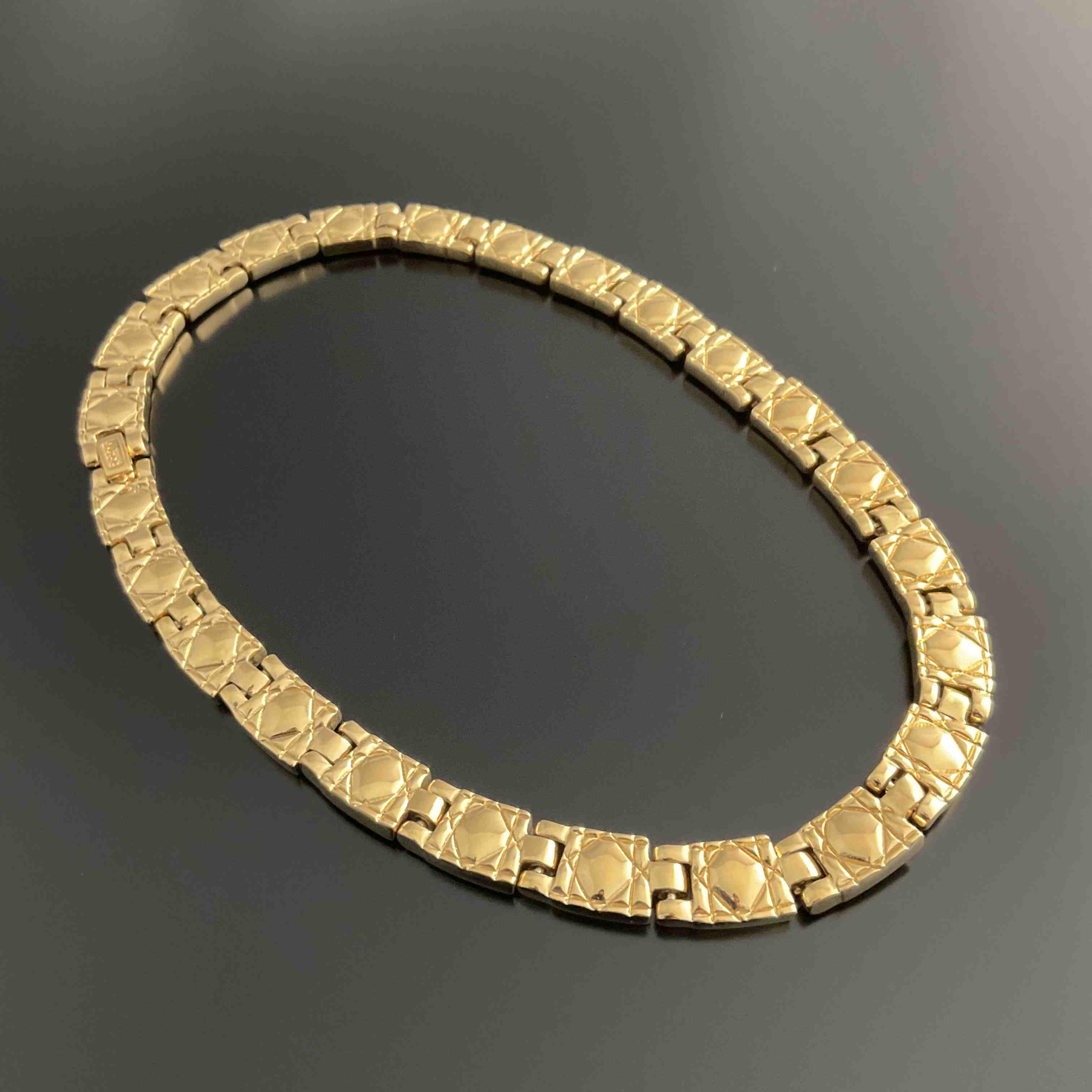 DIOR. COLLIER court en métal doré à maillons de forme rectangulaire articulés à motif matelassé.