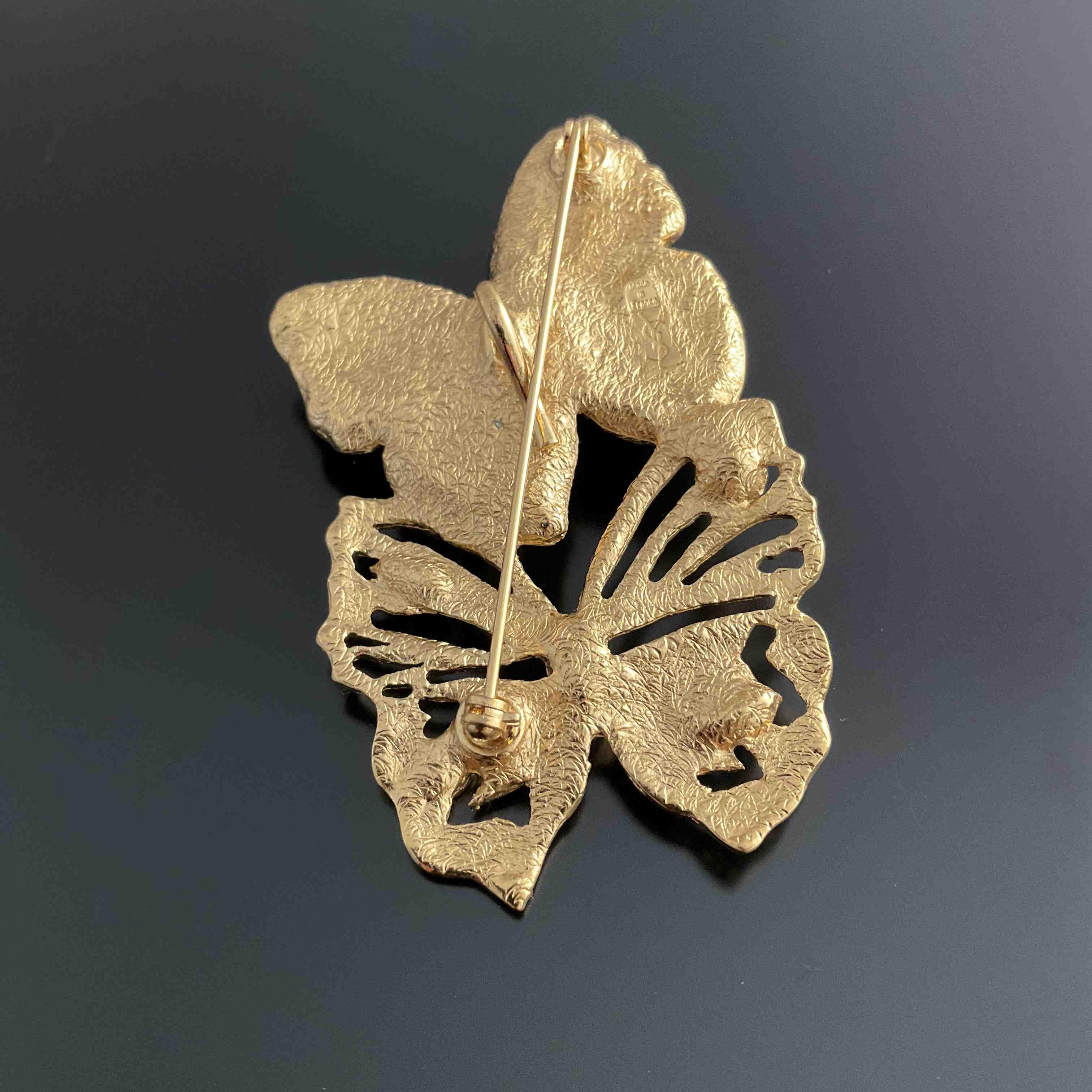 YVES SAINT LAURENT. BROCHE en métal doré figurant deux papillons en vol ornés d'imitations de...