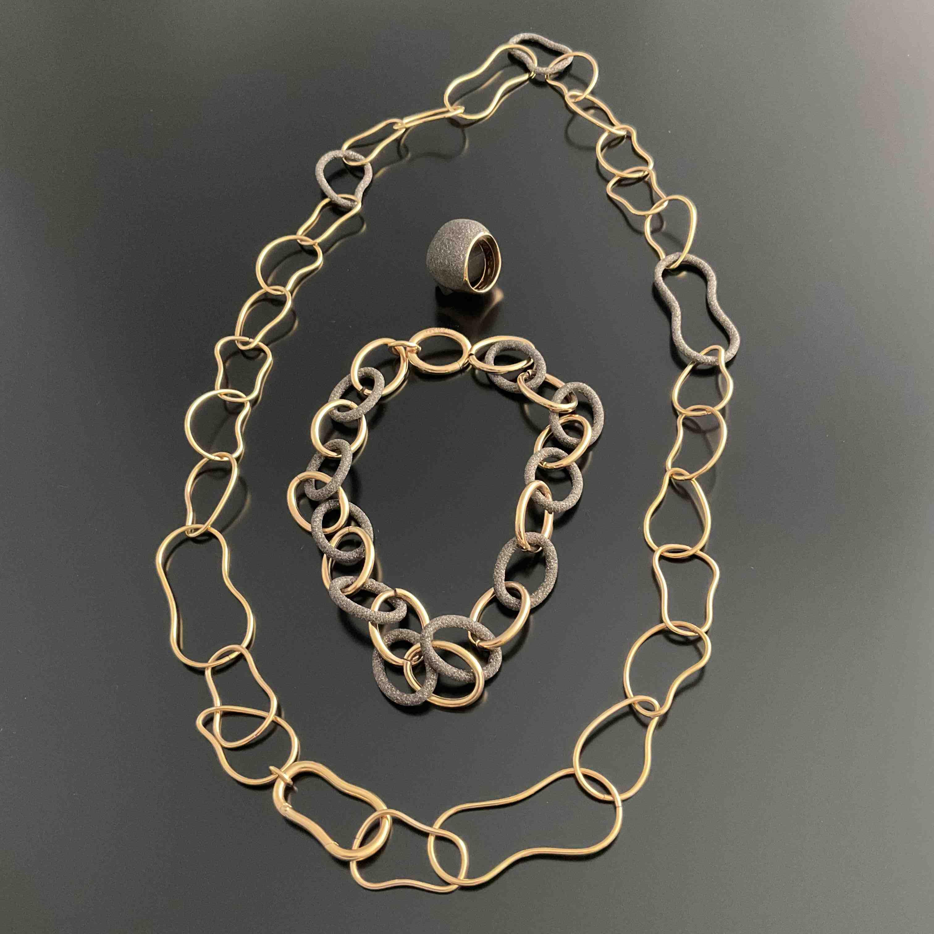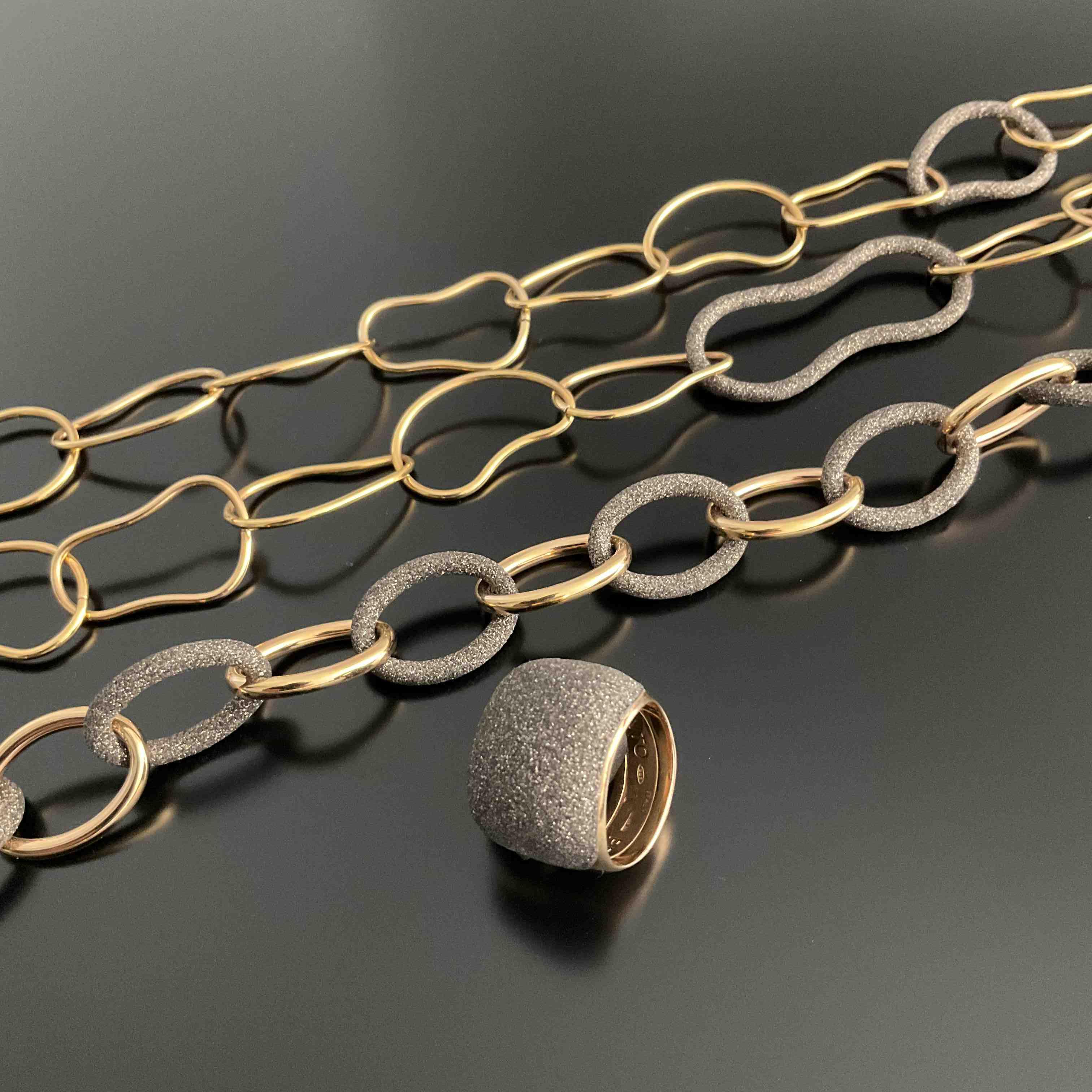 - SAUTOIR maille forçat irrégulière à trois maillons émaillés de carbone de synthèse.