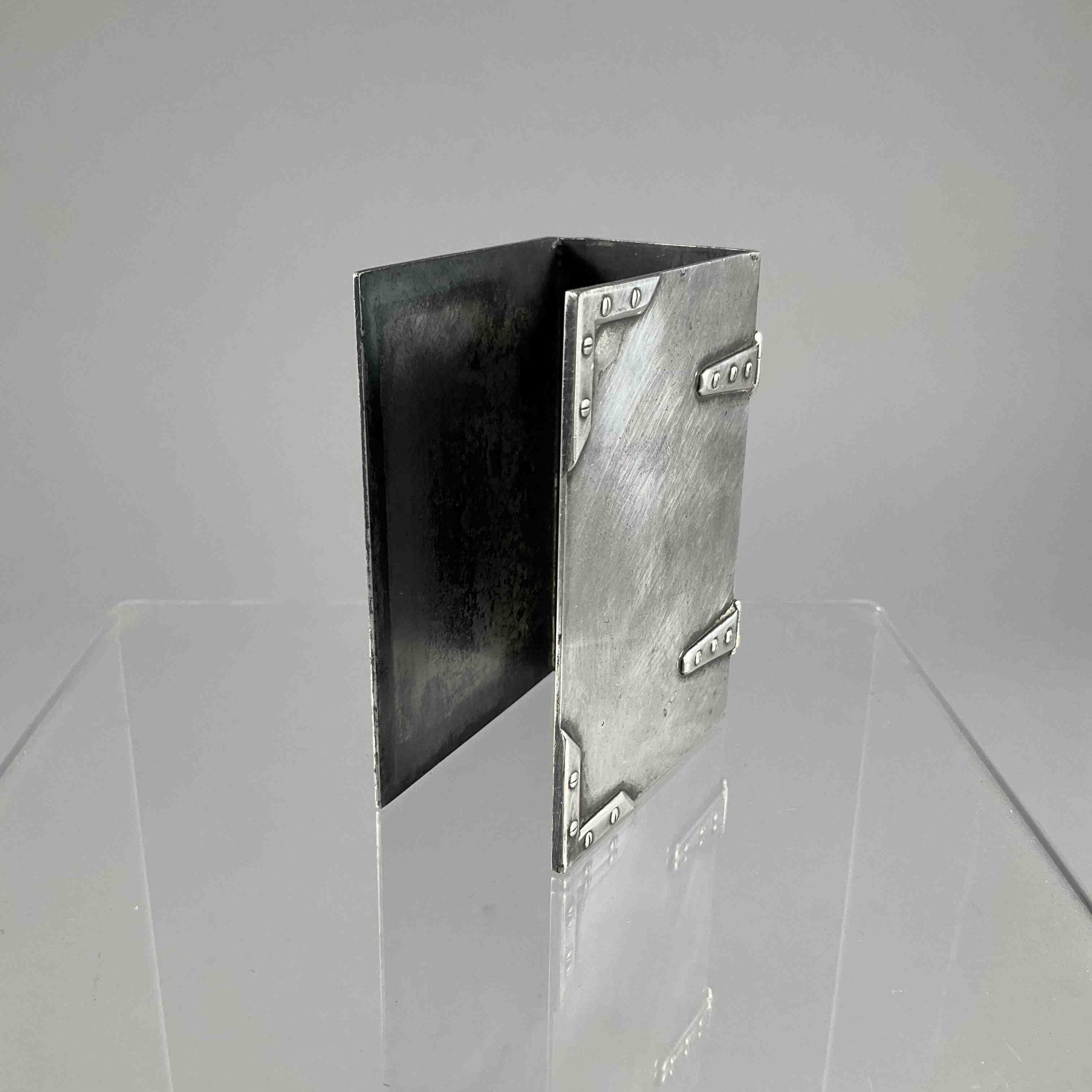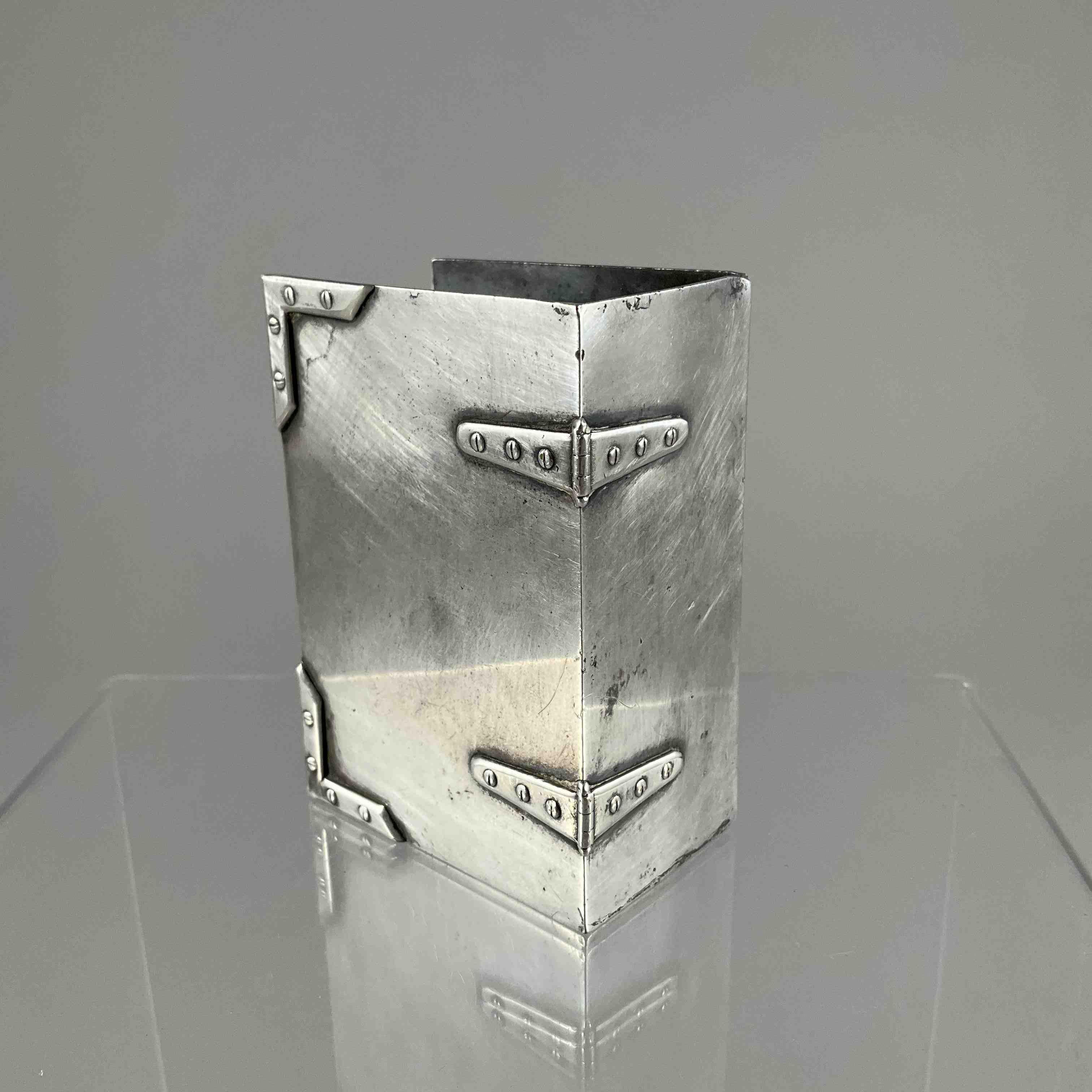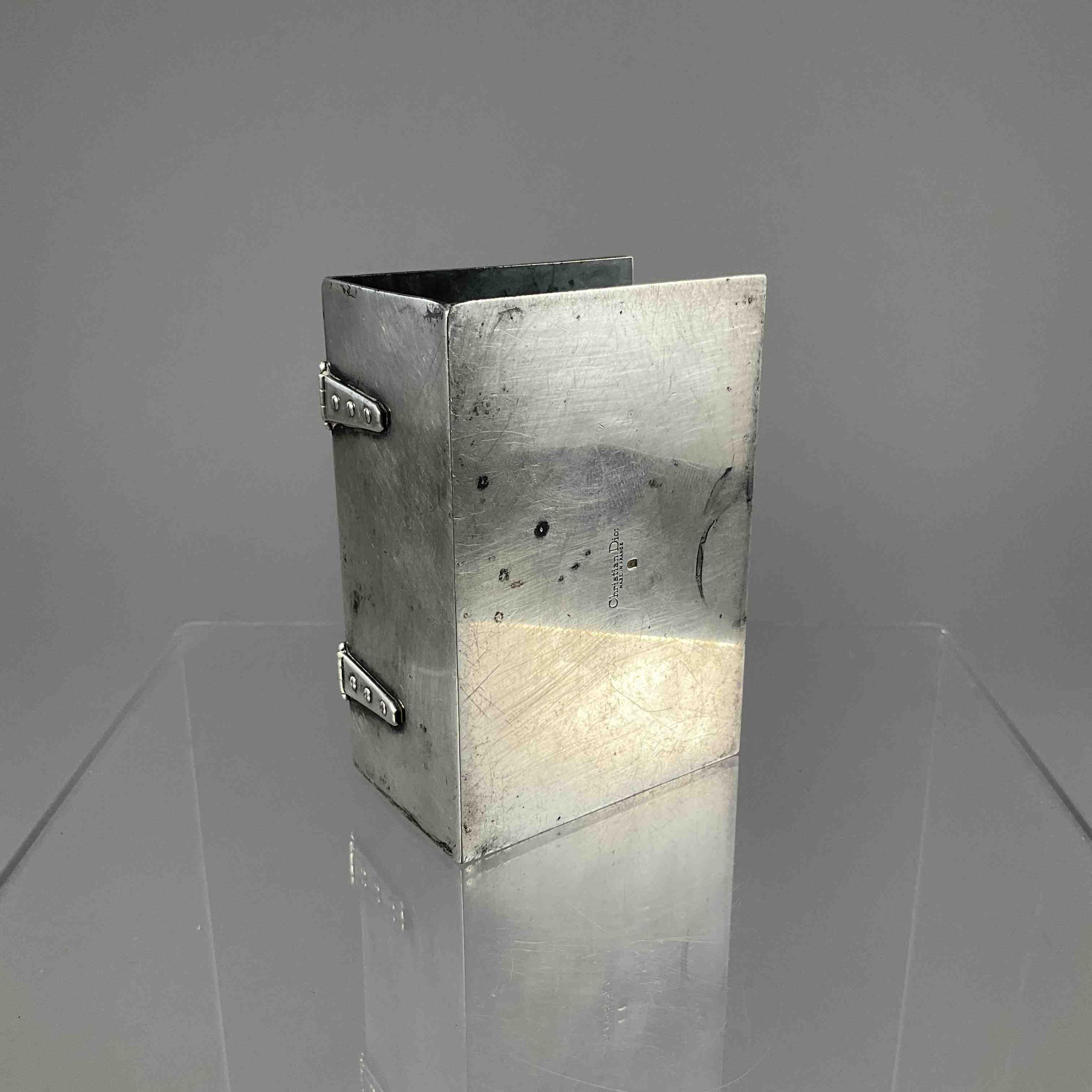 Christian DIOR. ETUI pour GRANDE BOITE D'ALLUMETTES de forme rectangulaire en métal argenté à décor de ferrures et charnières.