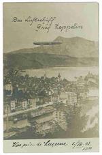 [SUISSE] CARTE PHOTO ANCIENNE, Zeppelin au dessus de la ville de Lucerne