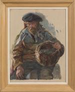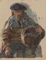 Achille GRANCHI-TAYLOR (Lyon, 1857- Asnière sur Seine, 1921) .Pêcheur au panier.Huile sur carton non signée.Hauteur...