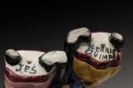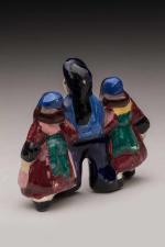 Quatre sujets en faïence émaillée polychrome. Signés.