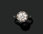 BAGUE en or gris et platine (950 millièmes) sertie d'un DIAMANT de forme ronde et de taille brillant pesant 1,40 carats.