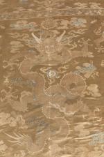 CHINE, dynastie Qing, XVIIIème siècle Rare et grande TENTURE impériale aux cinq dragons. Lampas, fond...