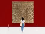 高:223厘米。宽度:209厘米(左边的缎子背景磨损,缺失)。