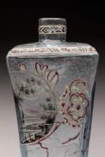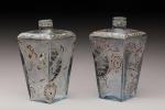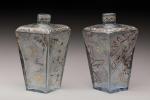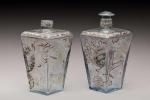 Deux FLACONS de section carrée évasée en verre soufflé à décor...