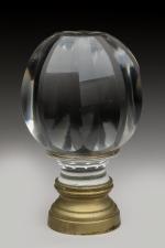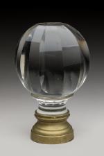 BOULE D'ESCALIER en cristal taillé à pans. Sur une base en bronze à doucine. Avec son système de fixation. Hauteur : 15 cm.